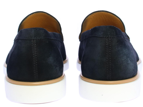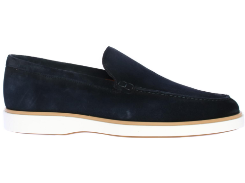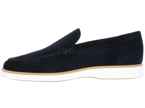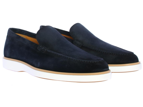 Donker blauwe suede heren instapper van Magnanni. Deze sportieve instapper komt op een witte rubberen zool en is leer gevoerd.