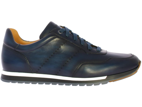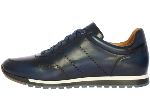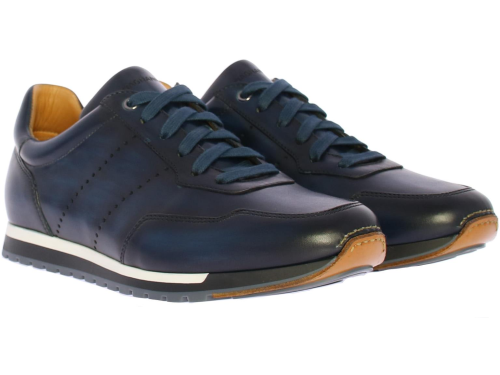 Donker blauwe suede/leren heren sneaker van Magnanni. Deze sneaker komt in donker blauw leer met blauwe suede accenten. De sneaker is leer gevoerd en heeft een rubberen zool. De binnenzool is uitneembaar.