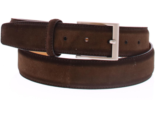 Donker bruine suede heren riem van Magnanni. Met een slanke gesp en een tijdloos design voegt deze riem een vleugje klasse toe aan elke outfit, geschikt voor zowel formele als informele gelegenheden. De riem is leer tegengevoerd en in te korten aan de gesp kant.