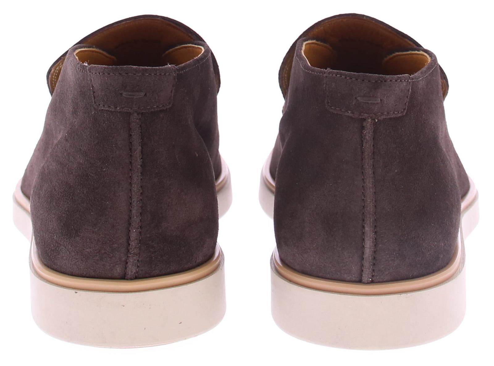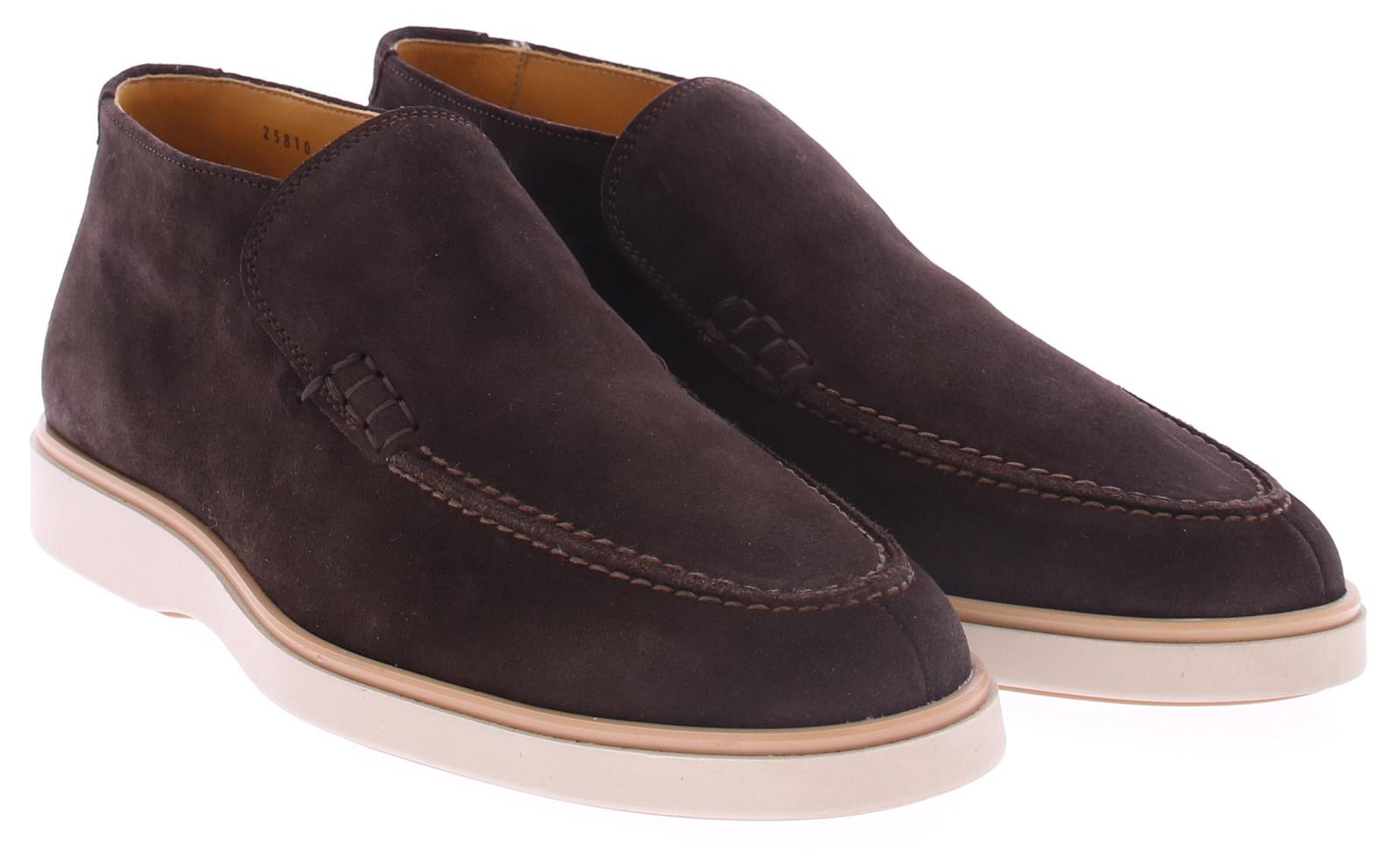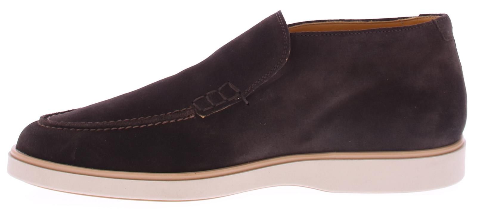 Heren halfhoge instapper uitgevoerd in donkerbruin suède met leren voering op een sportieve rubberen zool. Het binnenwerk heeft een leren voering met een vast voetbed met comfortabele demping door de zachte schuimlaag. De uitzonderlijk flexibele kuipzool van rubber geeft dit model z'n sportieve look en is verstevigend. Je trekt dit model eenvoudig aan door de elastische inzetten onder de tong.