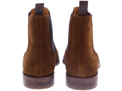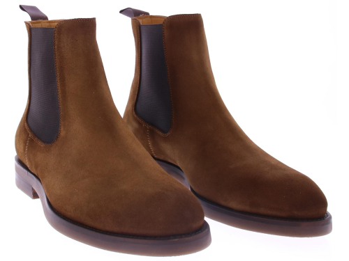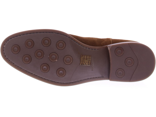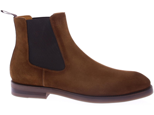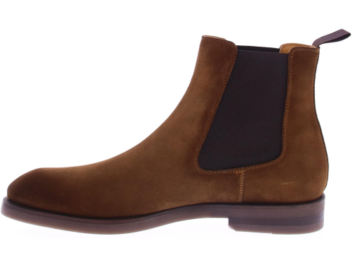 Heren Chelseaboot van Magnanni in cognac suede op een lichtbruine rubberen zool. De buitenkant is gemaakt van hoogwaardig suède, terwijl de binnenkant is gevoerd met zacht leer. Door de aantreklus trek je dit model razendsnel aan- en uit. De rubberen zool zorgt voor een goede grip en stabiliteit.