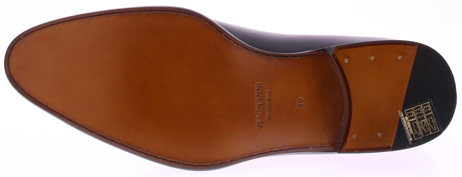 Heren veterschoen van het Spaanse merk Magnanni model wholecut artikel 9762. Deze schoen is uitgevoerd in zwart leer en heeft een leren zool en voering. De schoen is gemaakt op de Bologna constuctie. Hierbij vervalt de binnenzool en loopt het bovenwerk onder de voet door waardoor de schoen veel soepeler buigt.