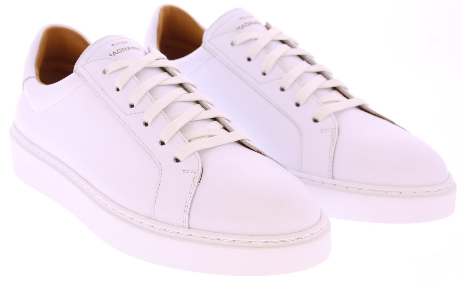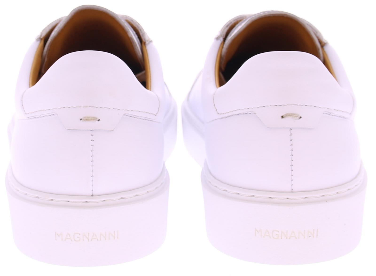 Heren sneaker van Magnanni artikel 24720 uitgevoerd in wit leer op een sportieve wit rubber zool. De schoen heeft een leren voering en een uitneembaar voetbed.