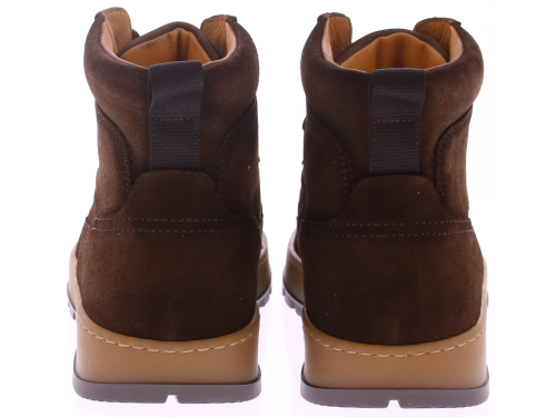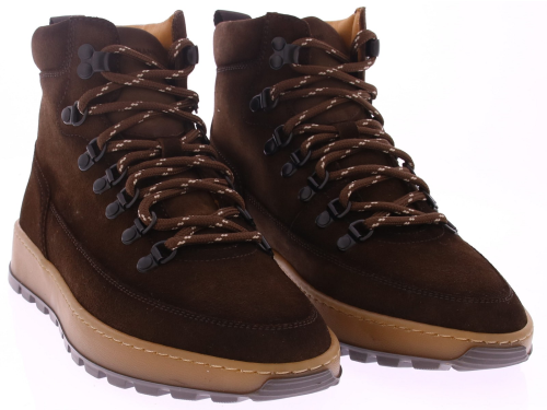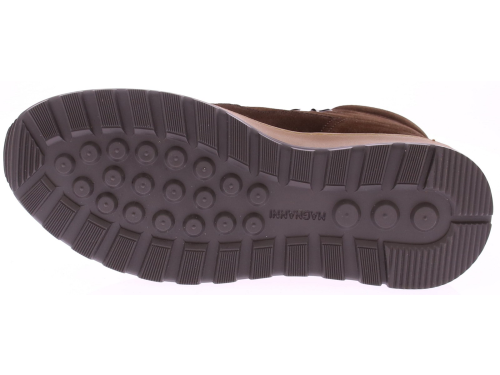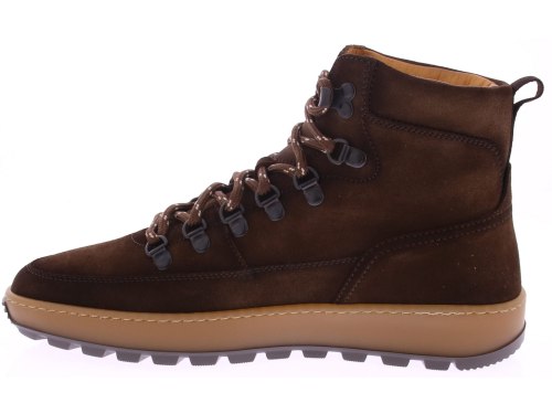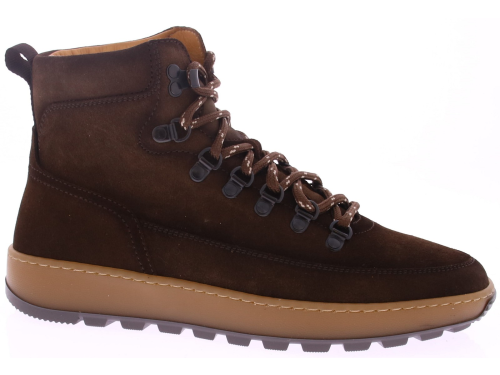 Deze middenbruine enkelboot van Magnanni is uitgevoerd in luxe crostidifu suède en combineert elegantie met een sportieve uitstraling. De schoen is voorzien van een comfortabele rubberen zool met een stevige grip en een warme leren voering. De metalen veterhaken en gevlochten veters geven de boot een stoere, bergschoen-achtige look zonder in te leveren op stijl. Perfect voor het najaar of een casual-chique winteroutfit.