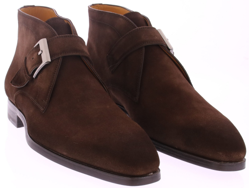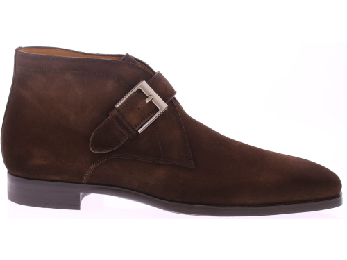 Deze enkelhoge Magnanni gespschoen in rijk donkerbruin suède is de perfecte balans tussen klassiek en modern. De schoen heeft een slank ogende leest die toch verrassend veel ruimte biedt, ook voor bredere voeten. De stijlvolle gesp en het luxueuze suède maken dit een veelzijdige keuze voor de moderne man. Waarom deze schoen een must-have is: Deze donkerbruine uitvoering is bijzonder veelzijdig en past perfect bij zowel warme als neutrale tinten. De rubberen zool zorgt voor comfort en grip bij dagelijks gebruik, terwijl het enkelhoge ontwerp net dat beetje extra flair geeft. Stijlideeën: Combineer met een grijze of beige chino, een wollen broek of zelfs een donkere jeans. Ideaal voor werk, etentjes of een verzorgd weekend-outfit.