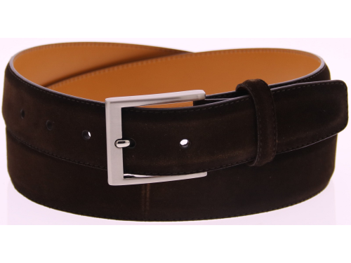Magnanni Riem 1079 | Crostidifu Medium Cacao | Donkerbruin Suède | 3,5 cm Breed Donkerbruin suède met een luxueus karakter. Deze Magnanni riem (artikel 1079) is uitgevoerd in hoogwaardig crostidifu cacao suède, een diepe donkerbruine tint met een zachte, fluweelachtige textuur. De riem is volledig leer gevoerd en straalt ingetogen luxe uit — perfect als verfijnde aanvulling op een geklede of smart casual outfit.