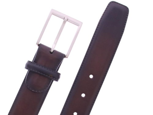 Magnanni Riem 1078 | Boltilux Marron | Hoogglans Donkerbruin Leer | 3,5 cm Breed Formele elegantie in een luxueuze glans. Deze Magnanni riem (artikel 1078) in Boltilux Marron is vervaardigd uit hoogwaardig kalfsleer met een rijke, donkere bruintint en een opvallende hoogglans finish. De verfijnde afwerking en het slanke profiel maken dit accessoire uitermate geschikt voor formele gelegenheden. De riem is volledig leer gevoerd en kan subtiel worden ingekort aan de gespzijde voor een perfecte pasvorm.