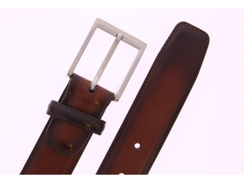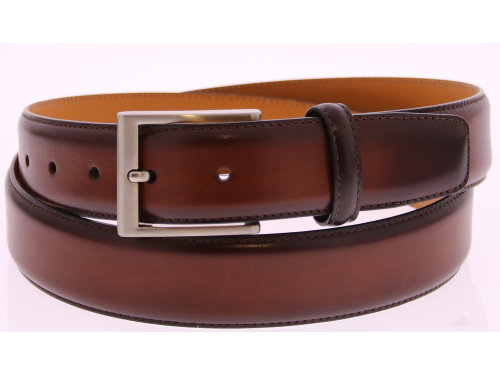 Magnanni Riem 1078 | Wind Medium Leeds Cognac | Gepatineerd Leer | 3,5 cm Breed Lichte elegantie met een handgemaakte finish. Deze Magnanni riem (artikel 1078) is uitgevoerd in prachtig Wind medium Leeds Cognac leer — een warme cognactint met levendige kleurschakeringen, ontstaan door een ambachtelijke handpoetsing. De diepe glans en het verfijnde kleurverloop geven de riem een luxueuze en rijke uitstraling. Volledig leer gevoerd en eenvoudig in te korten aan de gespzijde voor een perfecte pasvorm.