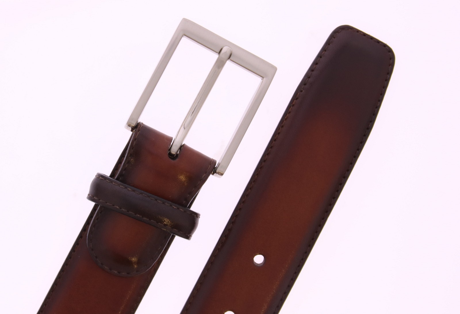 Magnanni Riem 1078 | Wind Medium Leeds Cognac | Gepatineerd Leer | 3,5 cm Breed Lichte elegantie met een handgemaakte finish. Deze Magnanni riem (artikel 1078) is uitgevoerd in prachtig Wind medium Leeds Cognac leer — een warme cognactint met levendige kleurschakeringen, ontstaan door een ambachtelijke handpoetsing. De diepe glans en het verfijnde kleurverloop geven de riem een luxueuze en rijke uitstraling. Volledig leer gevoerd en eenvoudig in te korten aan de gespzijde voor een perfecte pasvorm.