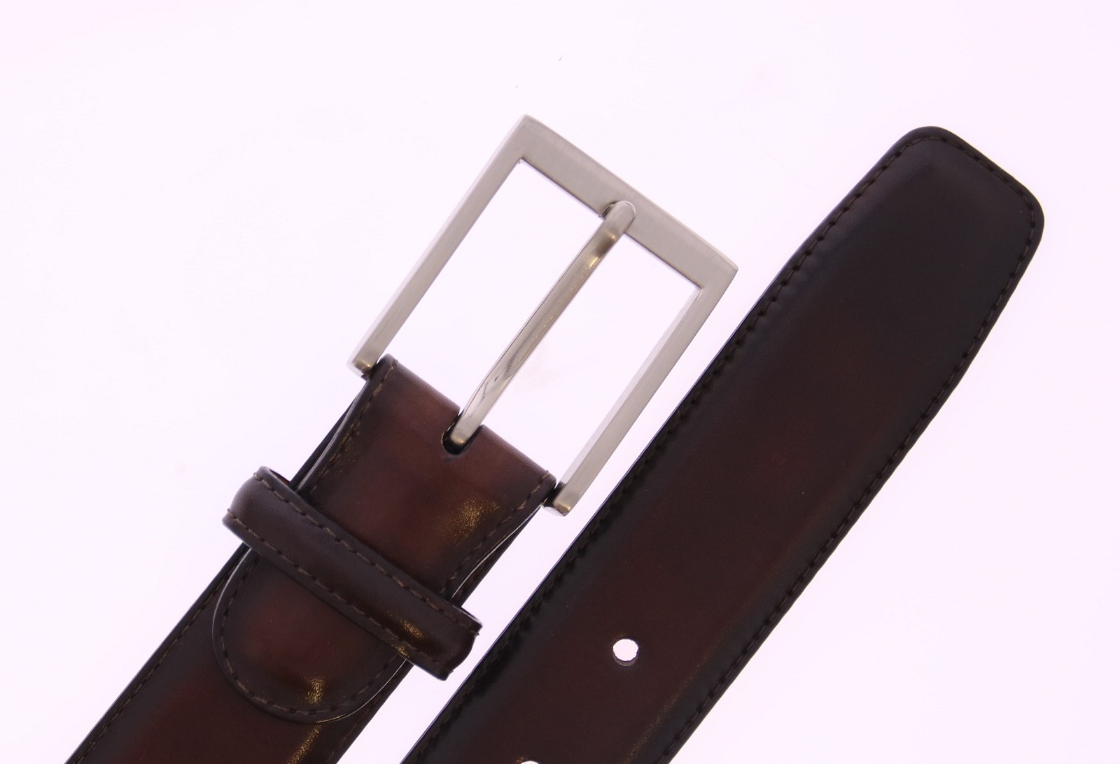 Magnanni Riem 1078 | Wind Medium Leeds Caoba | Gepatineerd Middenbruin Leer | 3,5 cm Breed Ambachtelijk leer met rijke kleur en karakter. Deze Magnanni riem (artikel 1078) is uitgevoerd in Wind Leeds Caoba — een warme middenbruine kleur met roodbruine ondertonen, afgewerkt met een met de hand aangebrachte patina. Het gladde kalfsleer straalt klasse uit en is volledig leer gevoerd voor optimaal comfort en duurzaamheid. De riem is bovendien eenvoudig in te korten aan de gespzijde voor een precieze pasvorm.
