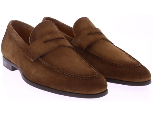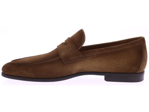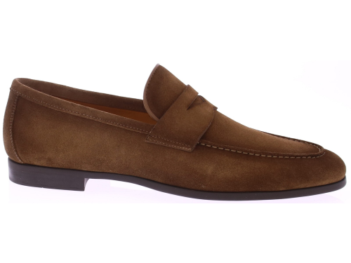 Midden bruin suède loafer van Magnanni. Deze stijlvolle herenschoen is uitgevoerd in zacht suède in de kleur Crosti Difu Castoro en biedt een luxueze, ingetogen uitstraling. De volledig rubberen zool zorgt voor soepel loopcomfort en maakt dit model geschikt voor zowel dagelijks gebruik als meer formele momenten. De fijne belijning en leren binnenvoering geven de loafer een elegante afwerking. Dit model heeft geen uitneembaar voetbed.