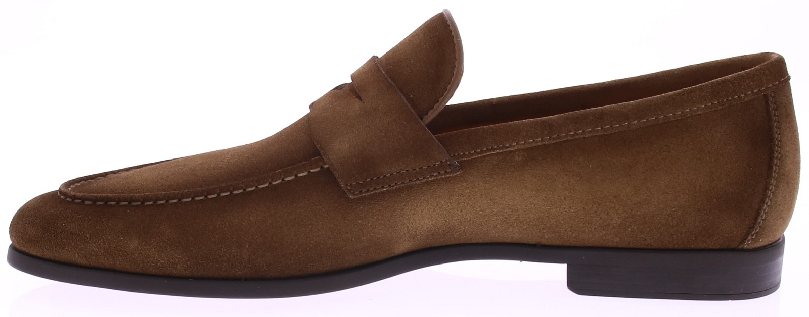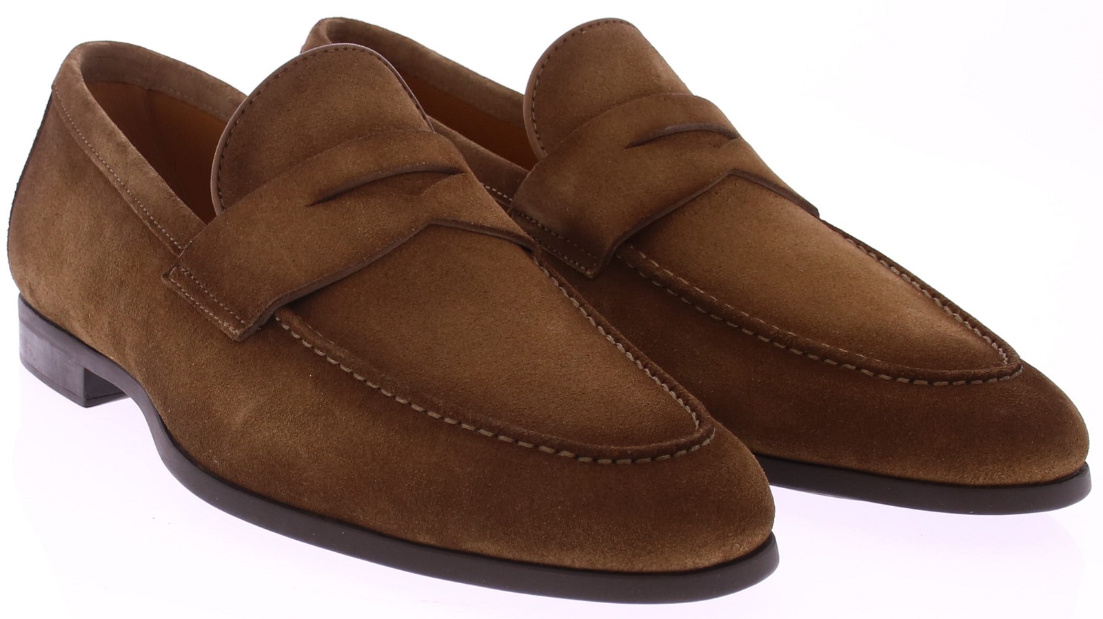 Midden bruin suède loafer van Magnanni. Deze stijlvolle herenschoen is uitgevoerd in zacht suède in de kleur Crosti Difu Castoro en biedt een luxueze, ingetogen uitstraling. De volledig rubberen zool zorgt voor soepel loopcomfort en maakt dit model geschikt voor zowel dagelijks gebruik als meer formele momenten. De fijne belijning en leren binnenvoering geven de loafer een elegante afwerking. Dit model heeft geen uitneembaar voetbed.