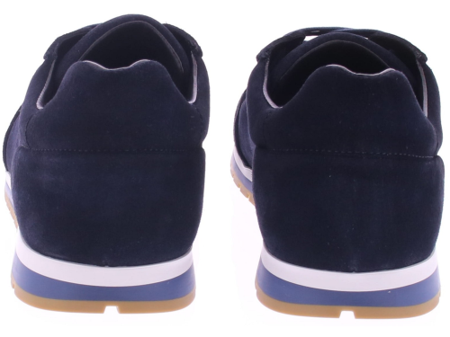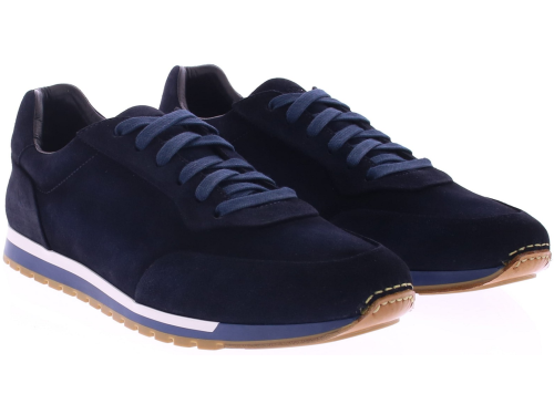 Donkerblauwe suède heren sneaker van Magnanni. Deze stijlvolle sneaker in crostadifu navy is uitgevoerd in zacht, hoogwaardig suède en sluit perfect aan op een moderne, verfijnde look. De sportieve rubberzool biedt uitstekende demping en stabiliteit, ideaal voor dagelijks comfort. Het uitneembare voetbed maakt de schoen geschikt voor eigen inlays. Een tijdloos en luxe model voor heren die elegante eenvoud waarderen.