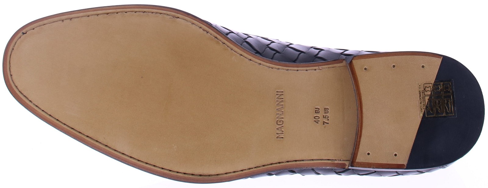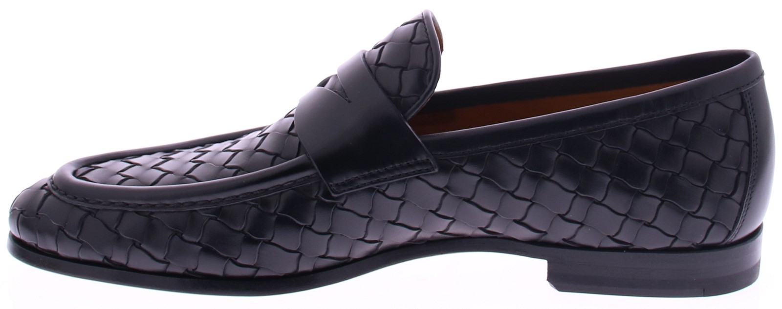 Zwart vlechtleren heren loafer van Magnanni. Dit luxe model is uitgevoerd in gevlochten leer in de kleur Boltiarcade Passado Blu Talco Negro, met een diepe, handgefinishte tint die het ambacht prachtig versterkt. De elegante band over de wreef en de verfijnde belijning geven de instapper een stijlvolle, tijdloze uitstraling. De leren zool en leren voering zorgen voor soepel draagcomfort. Een exclusieve keuze voor heren die kwaliteit en vakmanschap waarderen.