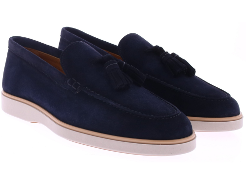 Blauw suède heren loafer van Magnanni. Dit sportief-chique model is uitgevoerd in zacht suède in de kleur Crosta Difu Azul en is voorzien van elegante kwastjes voor een verfijnde uitstraling. De lichte, comfortabele zool geeft de instapper een moderne en veelzijdige look, terwijl de leren voering zorgt voor een soepel draaggevoel. Een stijlvolle keuze voor heren die luxe en casual comfort moeiteloos willen combineren.