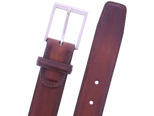 Magnanni Riem 1078 |Boltiarcade medium cognac | Gepatineerd Leer | 3,5 cm Breed Lichte elegantie met een handgemaakte finish. Deze Magnanni riem (artikel 1078) is uitgevoerd in prachtig leer — een warme cognactint met levendige kleurschakeringen, ontstaan door een ambachtelijke handpoetsing. De diepe glans en het verfijnde kleurverloop geven de riem een luxueuze en rijke uitstraling. Volledig leer gevoerd en eenvoudig in te korten aan de gespzijde voor een perfecte pasvorm.