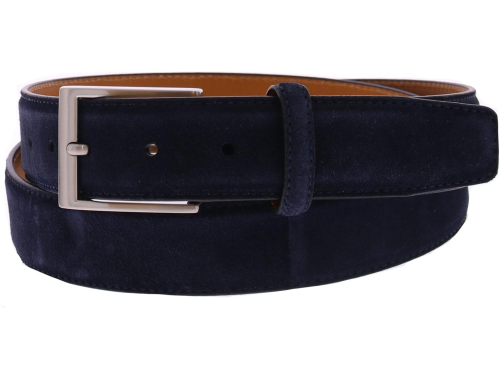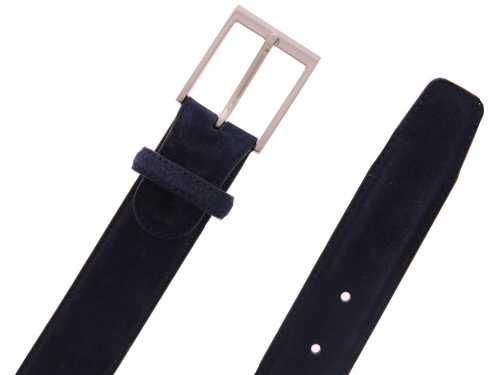 Donker blauwe suede heren riem van Magnanni. De riem is leer tegengevoerd en kan worden ingekort aan de gesp-kant.