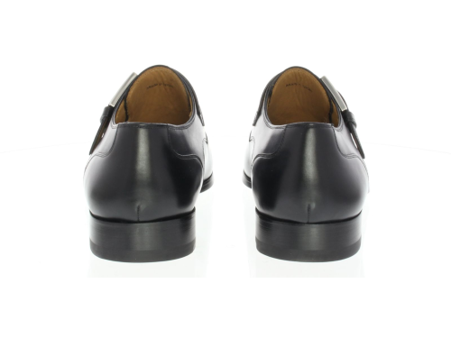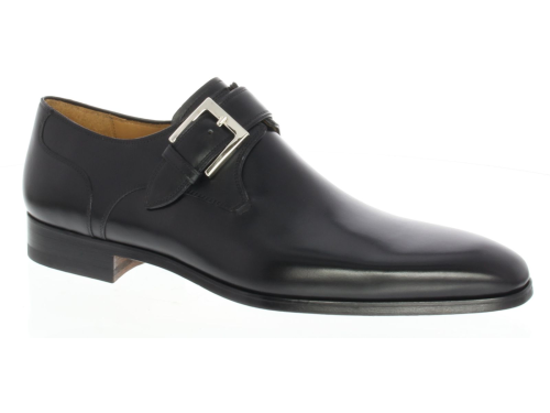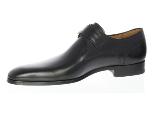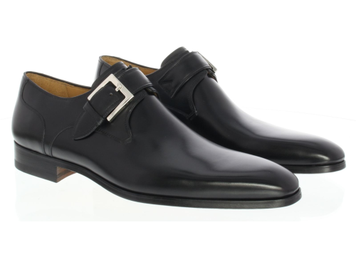 Zwart leren heren gespschoen van Magnanni. De zool van de schoen is van leer met een rubber inzet op het slijtvlak. De voering is geheel van leer.