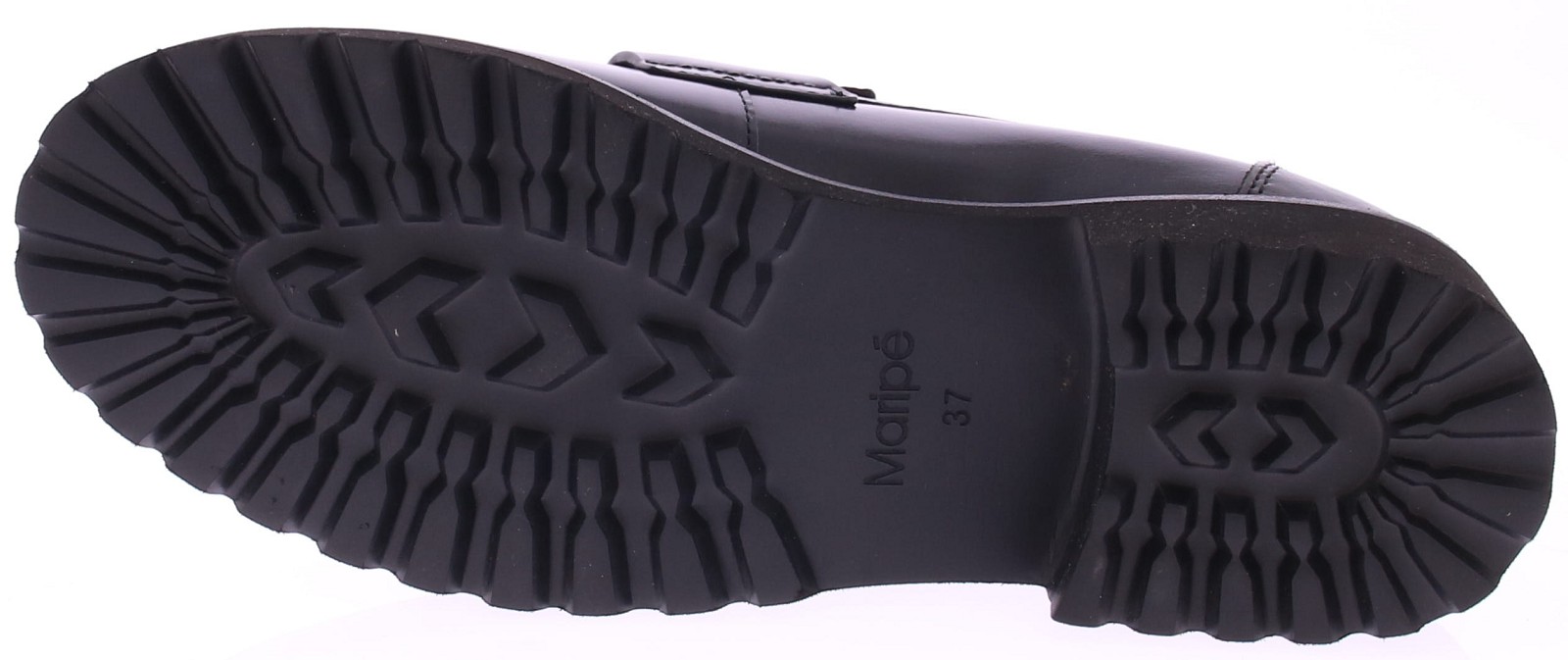 Zwart leren instapper voor dames van Maripe. Deze schoen heeft een bandje over de wreef met een klein zwart/wit lintje. De lichtgewicht grove zool zorgt voor een moderne uitstraling én extra loopcomfort. De perfecte combinatie van mode, comfort en kwaliteit – deze Maripe dames instapper past moeiteloos bij elke outfit.