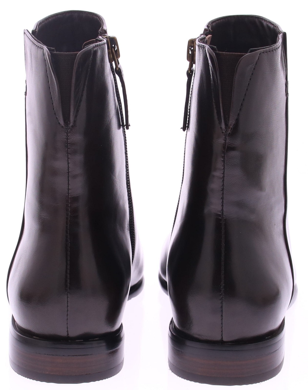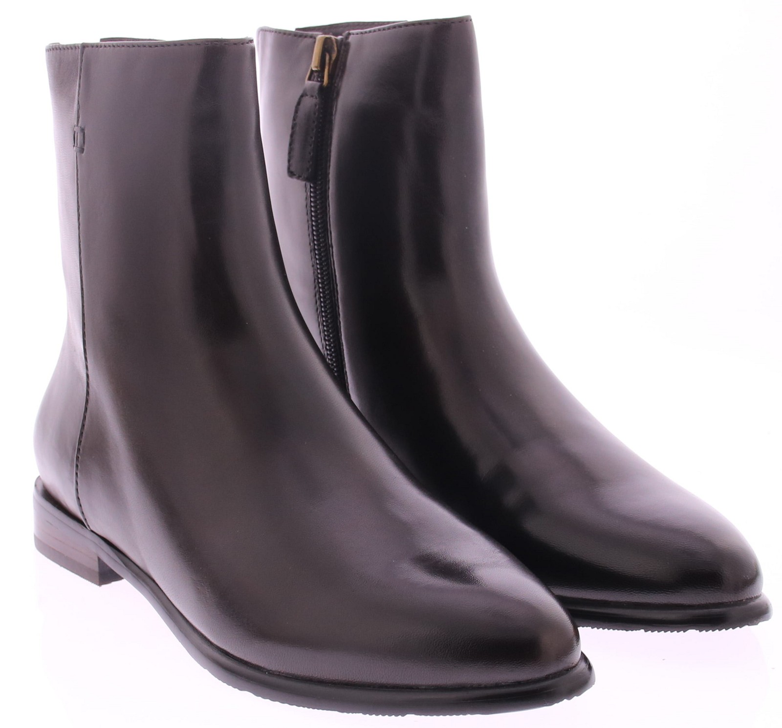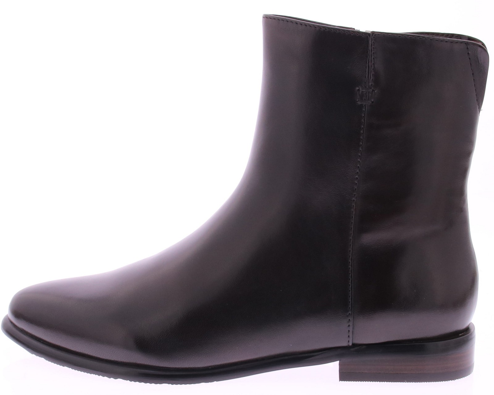 Donkerbruin leren enkellaars voor dames van Maripe. Deze basic donkerbruin leren laars heeft een rits aan de zijkant en een hakhoogte van 2 cm. De laars heeft een stoffen voering.