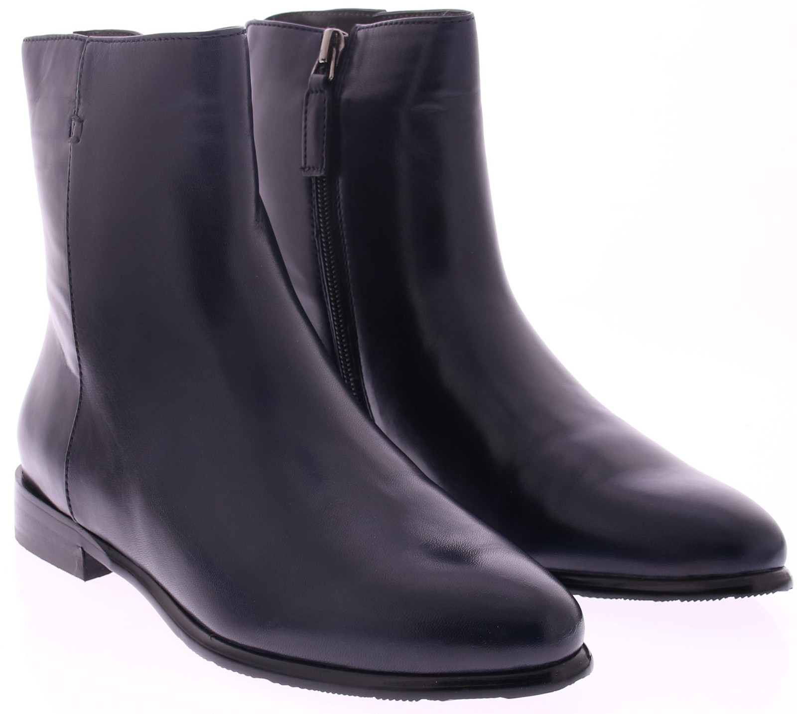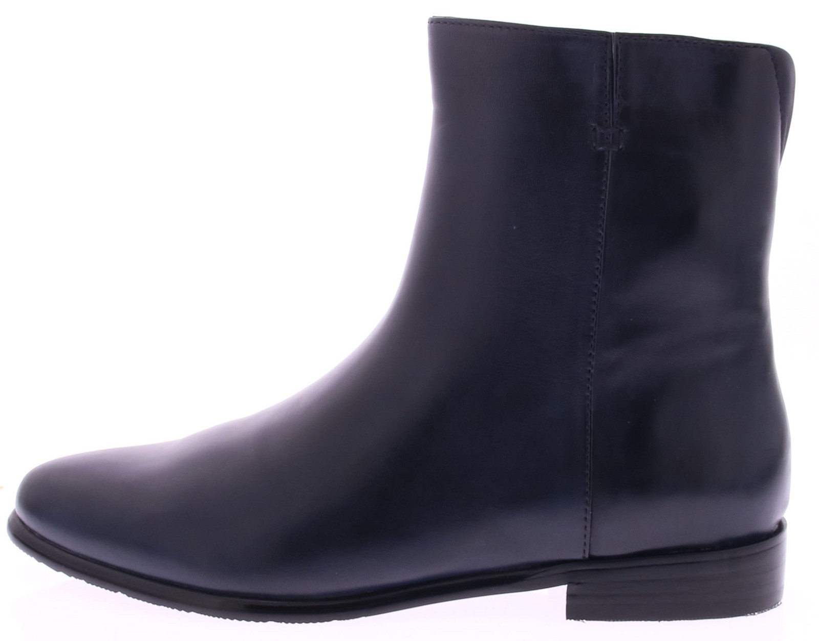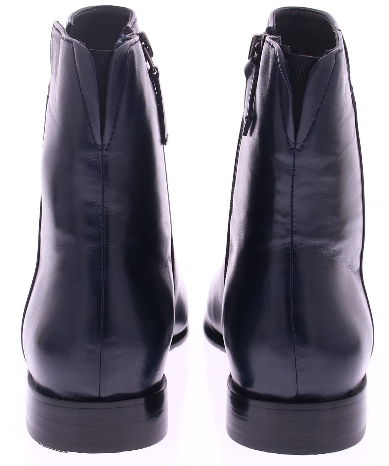 Donkerblauw leren enkelaars voor dames van Maripe. Deze basic donkerblauw leren laars heeft een rits aan de zijkant en een hakhoogte van 2 cm. De laars heeft een stoffen voering.