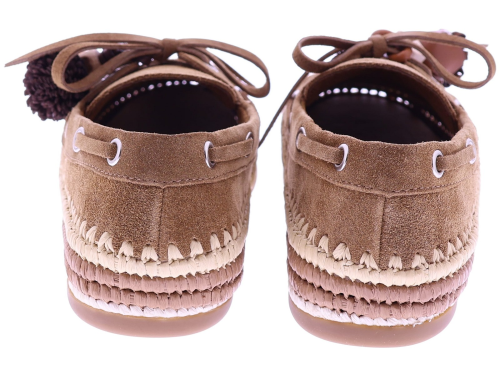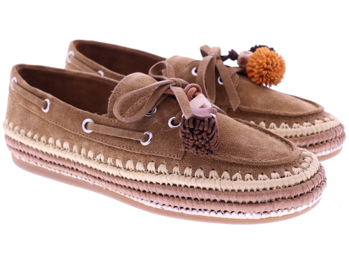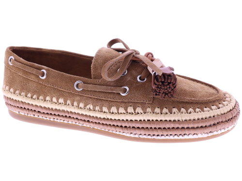 Middenbruin suède dames veterschoen van Maripé, model Ma176 V.6. Deze zomerse mocassin veterschoen heeft een leuke touwwand met sierstiksels langs de zool. De grote opvallende flos op de wreef geeft de schoen een speels en accent. Gemaakt van zacht suède voor optimaal draagcomfort en ideaal te combineren met zowel een linnen broek als een luchtige zomerjurk. Ontdek ook de andere dames instappers van Maripé bij Klijsen.
