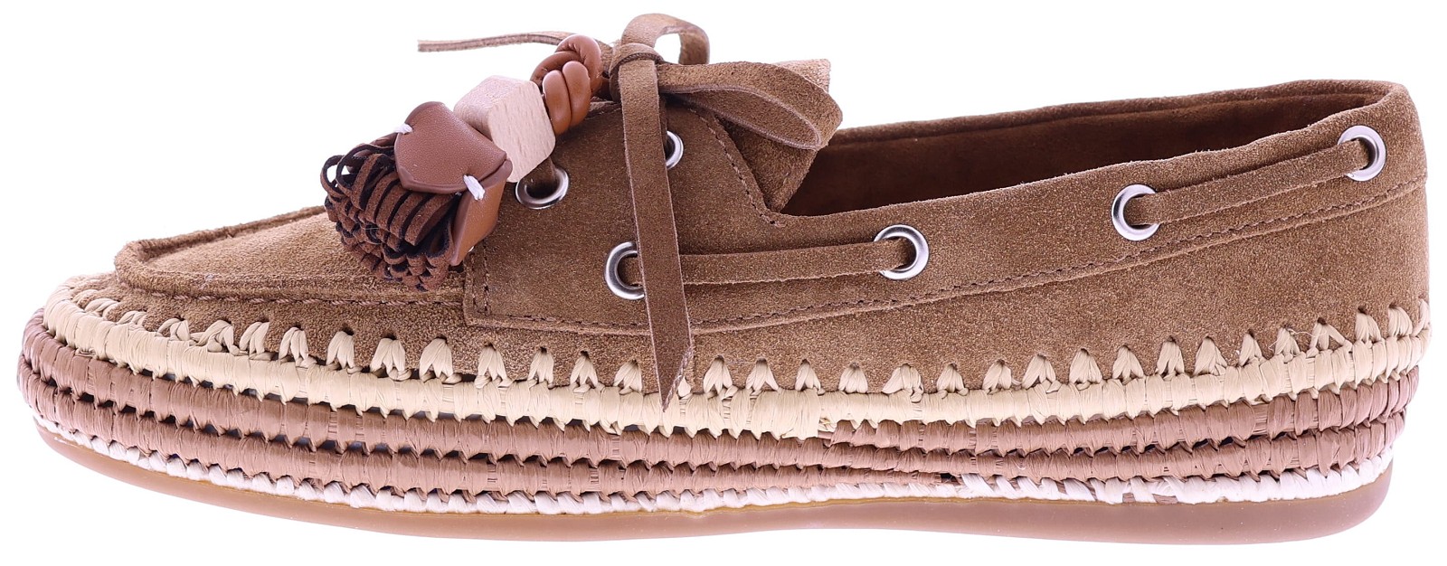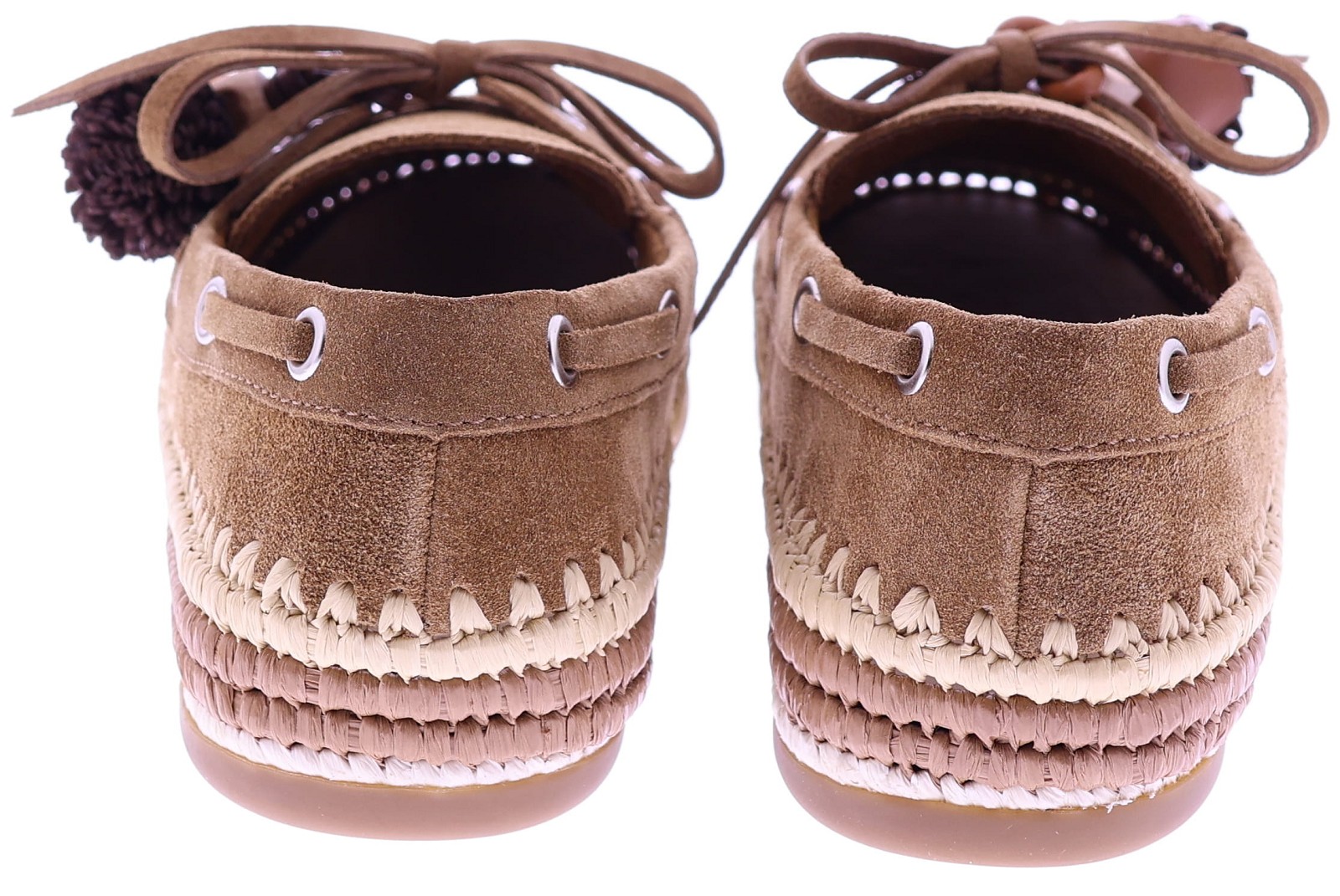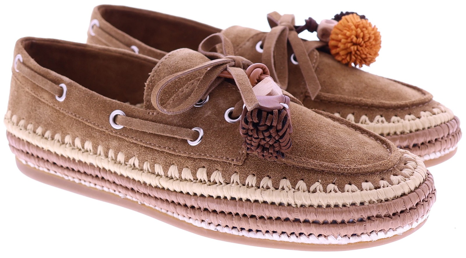 Middenbruin suède dames veterschoen van Maripé, model Ma176 V.6. Deze zomerse mocassin veterschoen heeft een leuke touwwand met sierstiksels langs de zool. De grote opvallende flos op de wreef geeft de schoen een speels en accent. Gemaakt van zacht suède voor optimaal draagcomfort en ideaal te combineren met zowel een linnen broek als een luchtige zomerjurk. Ontdek ook de andere dames instappers van Maripé bij Klijsen.