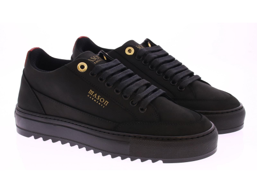 Zwart leren heren sneaker van Mason Garments. Deze sneaker de ESS-1D heeft een bovenwerk van leer en een zachte mesh binnenvoering. De zwarte zool is van rubber.