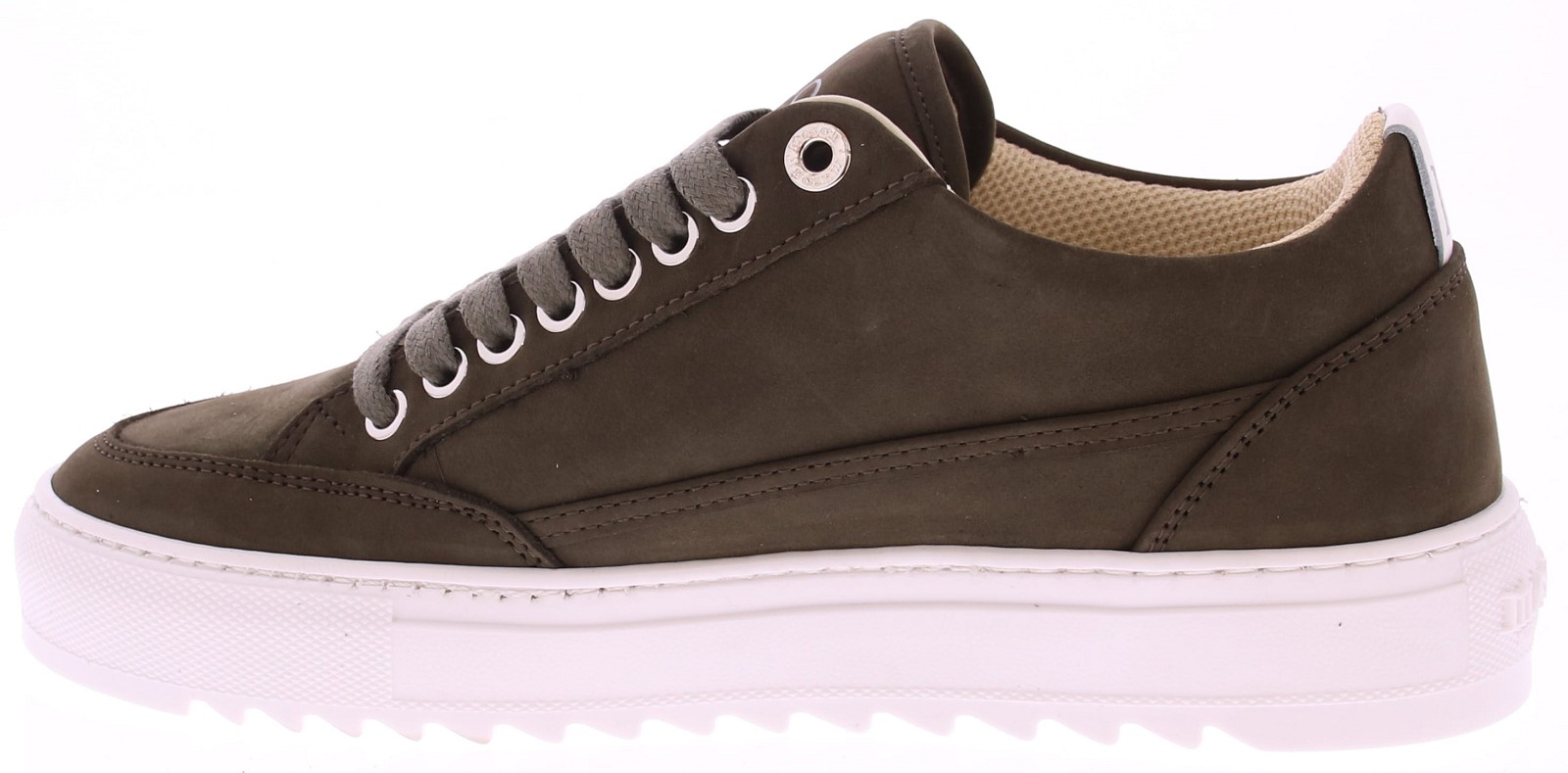 De MG52-3C van Maison Garments is een luxe sneaker die minimalistische stijl combineert met hoogwaardige afwerking. Deze low-top schoen is uitgevoerd in premium grijsgroene nubuck en straalt ingetogen elegantie uit. Het matte leer voelt zacht aan, terwijl de ton-sur-ton veters en metalen veteroogjes zorgen voor een sportieve, doch stijlvolle uitstraling. De binnenzijde is gevoerd met ademende meshstof en voorzien van een leren binnenzool, wat zorgt voor optimaal comfort gedurende de dag. De witte rubberen cupzool met gripprofiel voegt contrast toe en biedt betrouwbare ondersteuning – zowel in de stad als tijdens langere wandelingen.