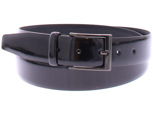 Zwarte lak riem van Man of Global. De riem heeft een leren voering en kan aan de gespkant worden ingekort.