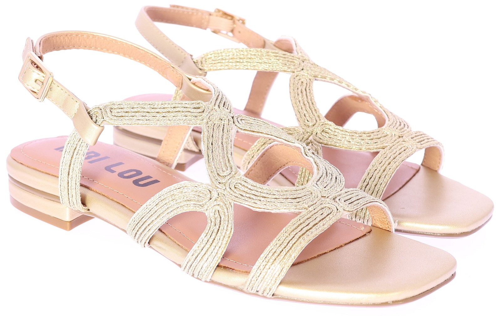 Platinakleurige leren dames sandalen van Bibi Lou. Deze sandalen zijn uitgevoerd met leren bandjes die zijn omwikkeld met platinakleurig metallic draad. Het verstelbare leren hielbandje biedt een comfortabele pasvorm en de lage hak van 2 cm maakt dit model prettig voor dagelijks gebruik. Leuk onder een jurk of een broek. Ontdek ook de andere dames sandalen van Bibi Lou bij Klijsen.