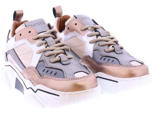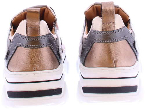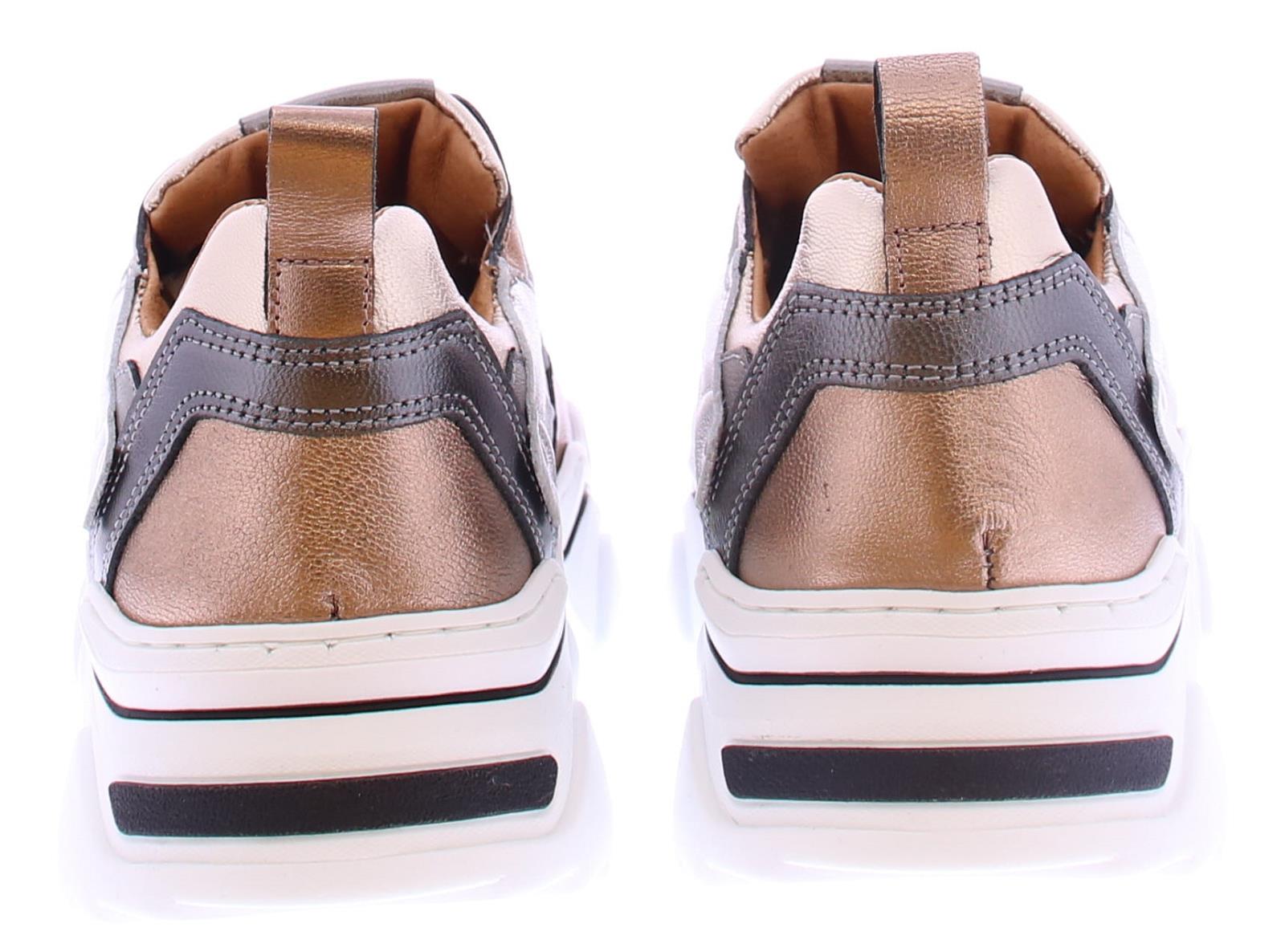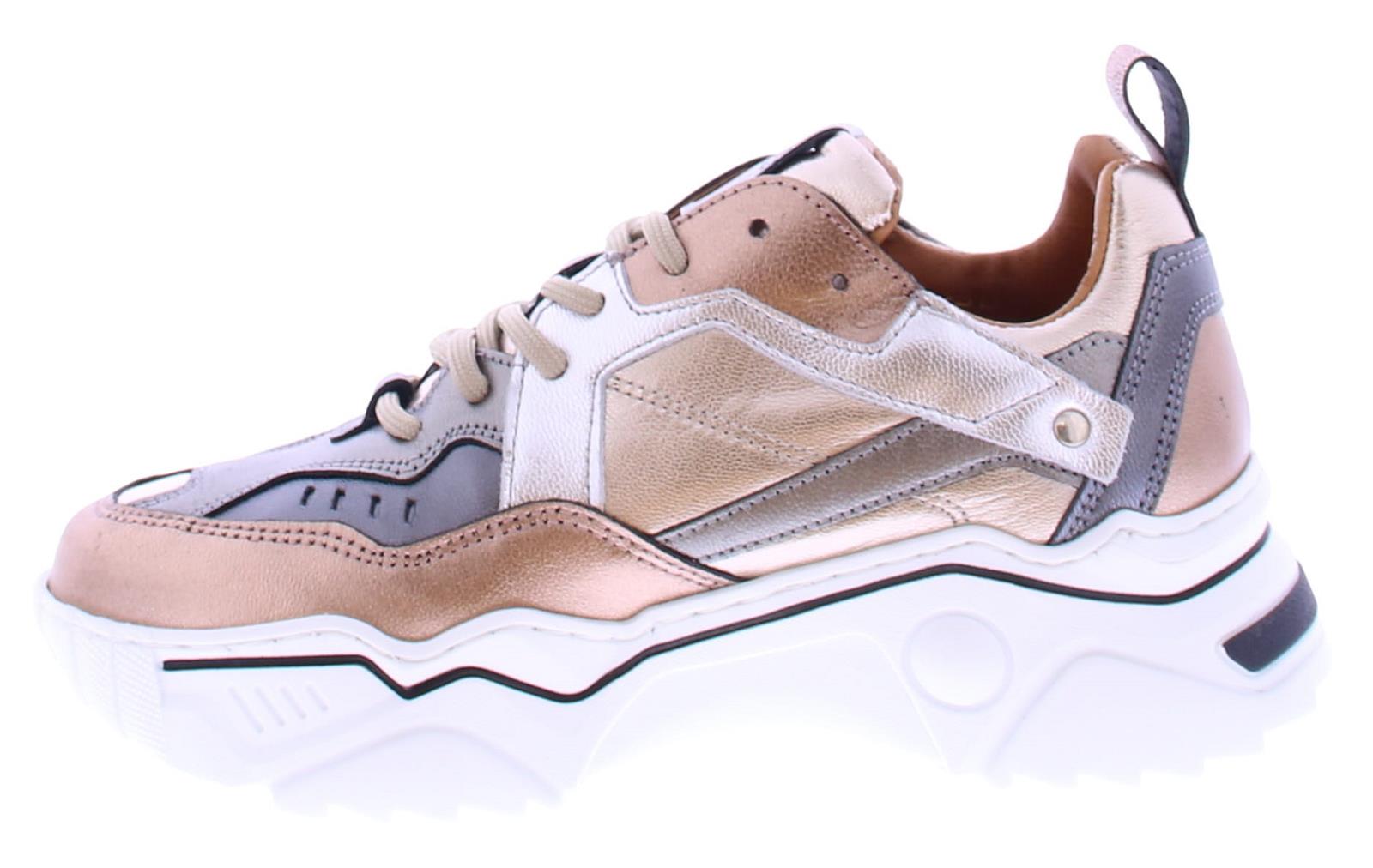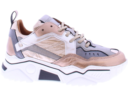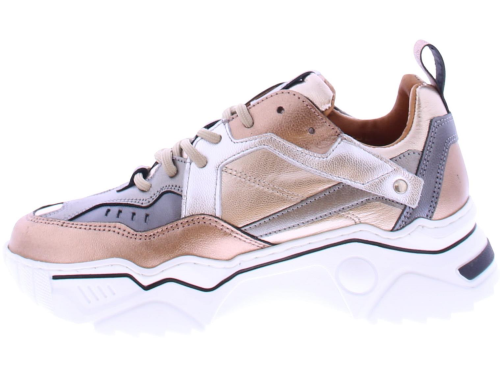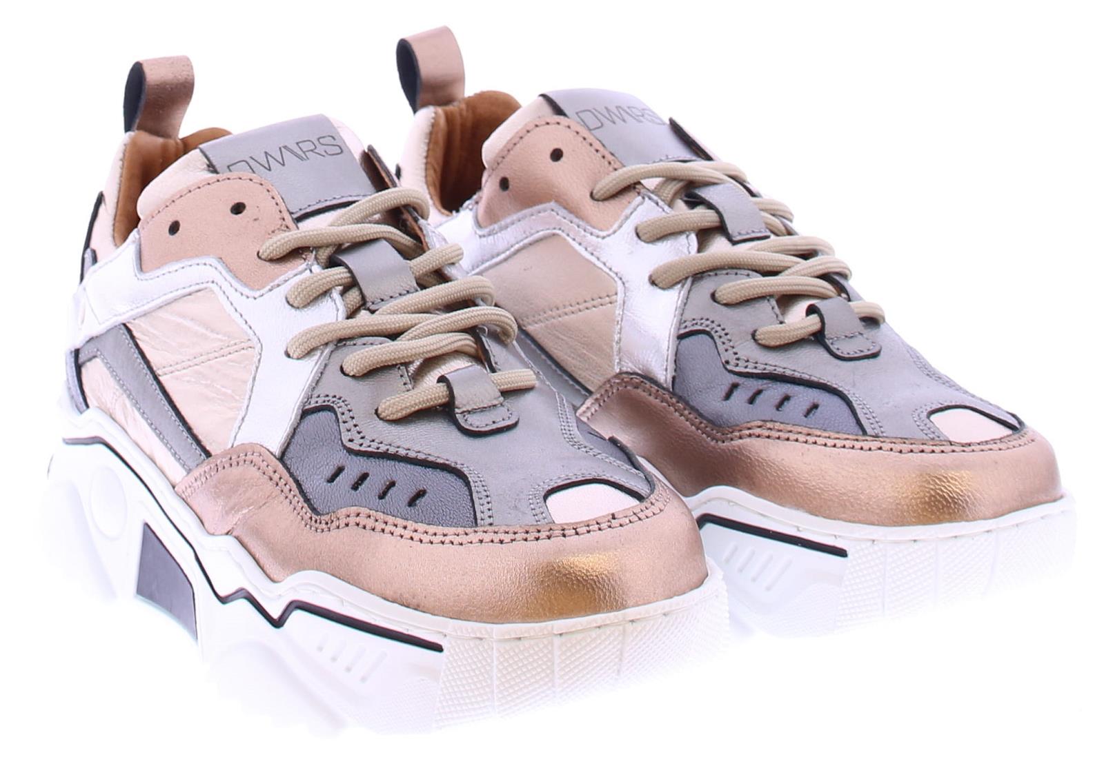 Zilveren/gouden dames sneaker van DWRS, model PLUTO STONE / CIPRA. Deze sneaker met metallic details voor dames is aan de buitenzijde van metallic en aan binnenzijde volledig van leer. Door de chunky zool is de sneaker perfect te combineren met verschillende outfits. De binnenzool is uitneembaar.