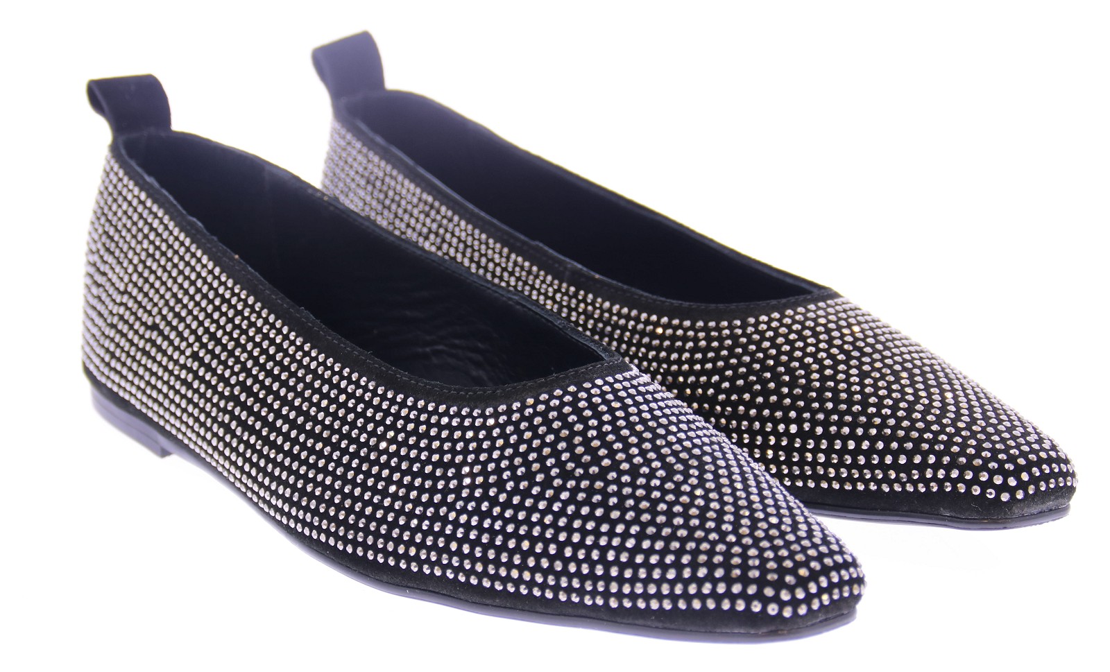 Zwarte leren dames ballerina met strass van Miss Behave, de Rea 1-i. Deze stijlvolle ballerina van mooi zacht zwart leer is afgewerkt met kleine strass steentjes voor een opvallende, maar chique uitstraling. Het tijdloze model biedt ultiem draagcomfort dankzij de zachte leren binnenzool en de rubberen loopzool. Perfect voor dagelijks gebruik of als elegante touch onder een zakelijke outfit.