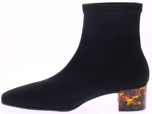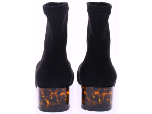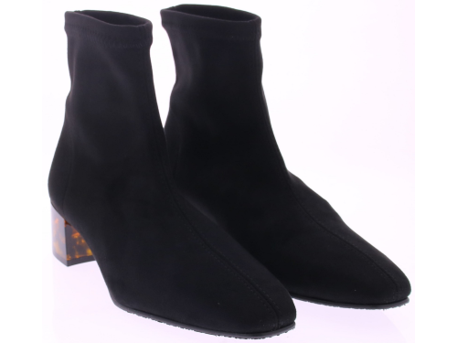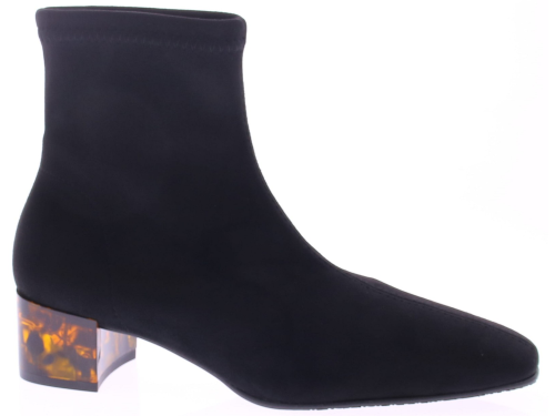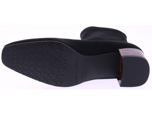 Zwart stretch stoffen dames korte laars van Miss Elastic. Deze eigentijdse korte dameslaars van Miss Elastic is uitgevoerd in een comfortabele stretch stof die mooi aansluit rond de enkel. Een leuk detail is de schildpadlook hak van 4 cm hoog. De rubberen zool zorgt voor goede grip en flexibiliteit bij het lopen. Een perfecte combinatie van comfort en flair – ideaal voor dagelijks gebruik of een trendy city look.
