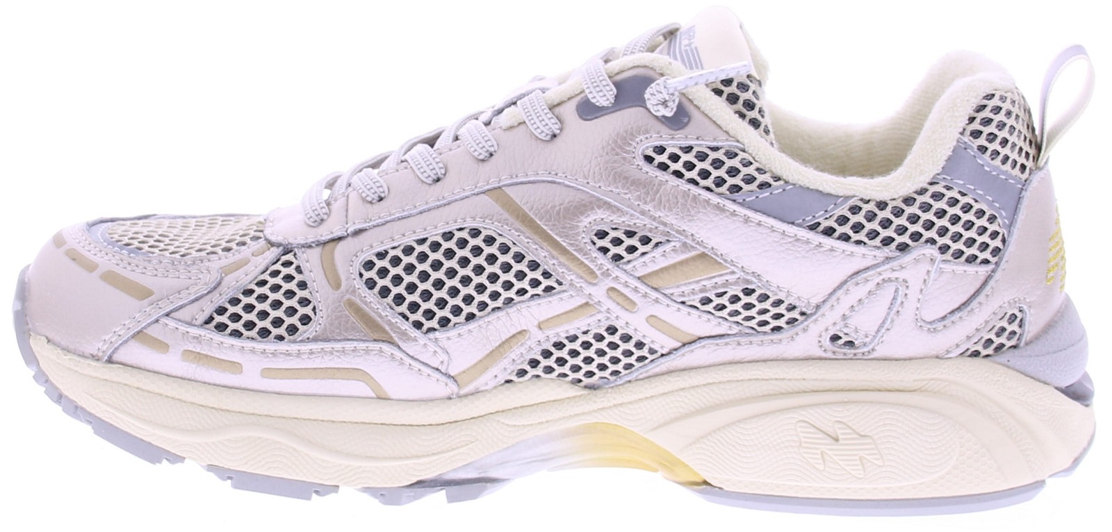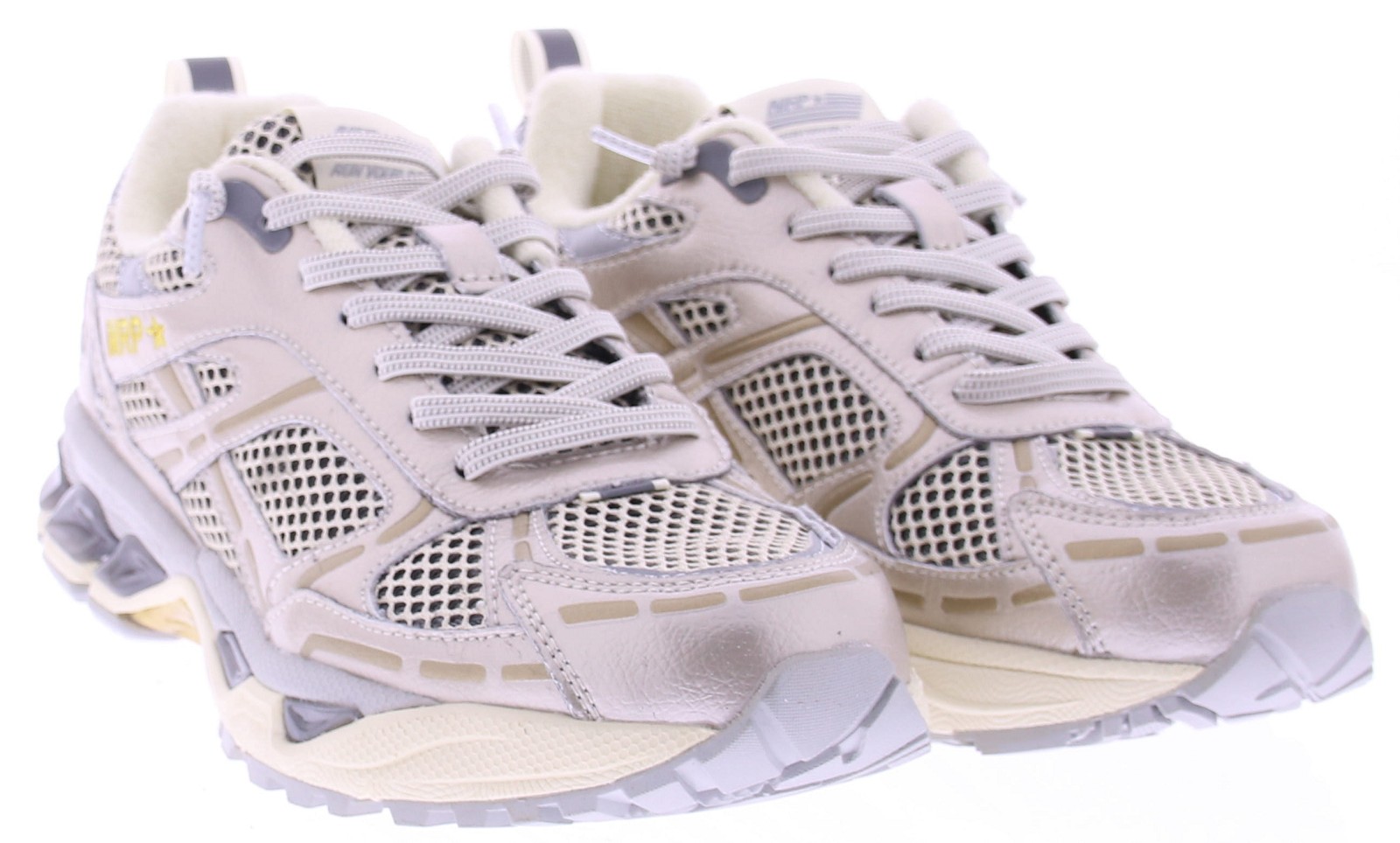 Champagnekleurig leer met mesh dames sneaker van Maripe. Deze sneakers zijn gemaakt van champagnekleurig leer met panelen in grof mesh. De voering is gemaakt van zacht textiel waardoor ze heerlijk comfortabel aanvoelen. De rubberen zool bied een uitstekende grip en ondersteuning. Het voetbed is vervangbaar voor u eigen persoonlijke inlegzool.