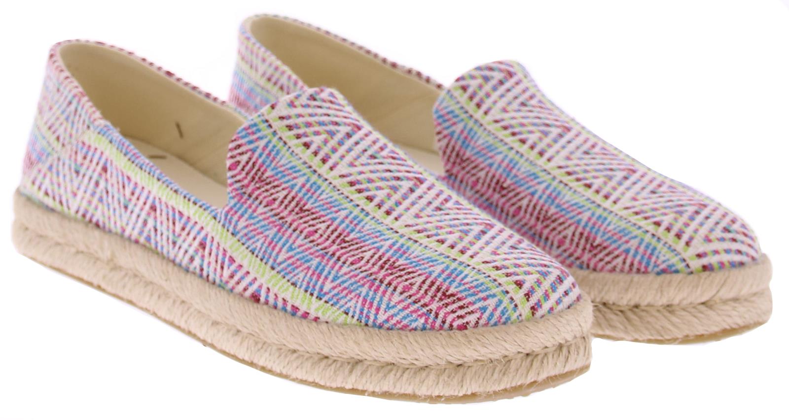 Dames instapper van Toms in canvas in een multikleurige print . De schoen heeft de bekende touwzool en een uitneembaar voetbed.TOMS is een trots lid van de Fair Labor Association en werkt samen met leveranciers die ethisch zakendoen, betrokken zijn bij werknemers, zorgen voor veilige werkomstandigheden en naleving van de mensenrechten en sociale verantwoordelijkheid nastreven.