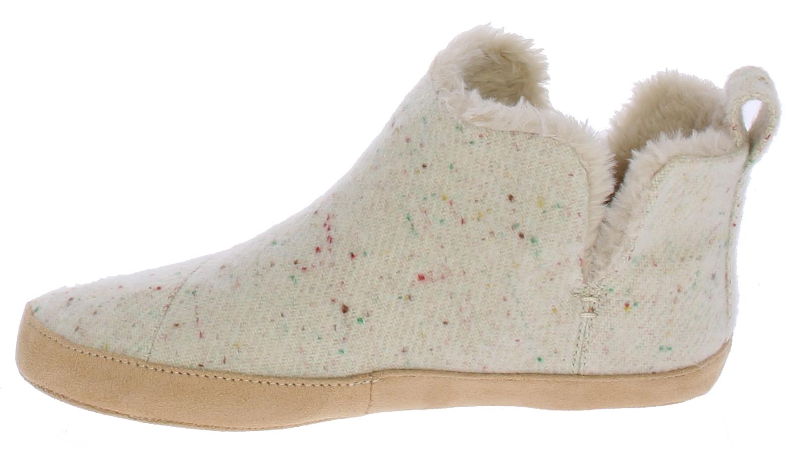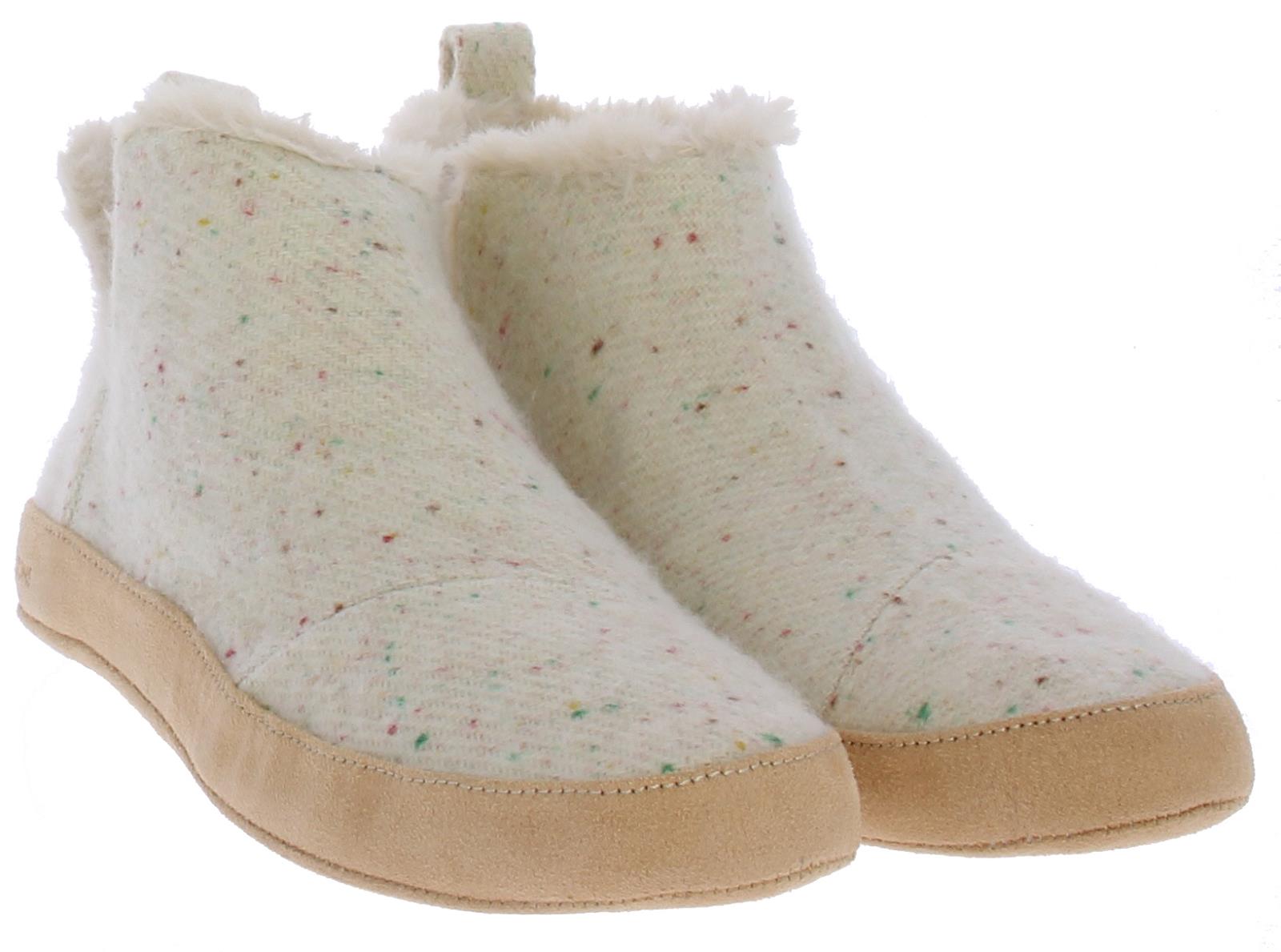 Multi-kleurige stoffen dames pantoffel van Toms. Lekker warm gevoerd met een kunstvacht. De zool is van stof en rubber.