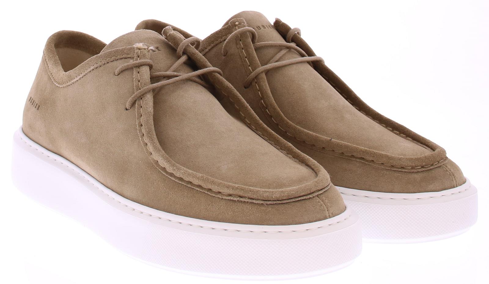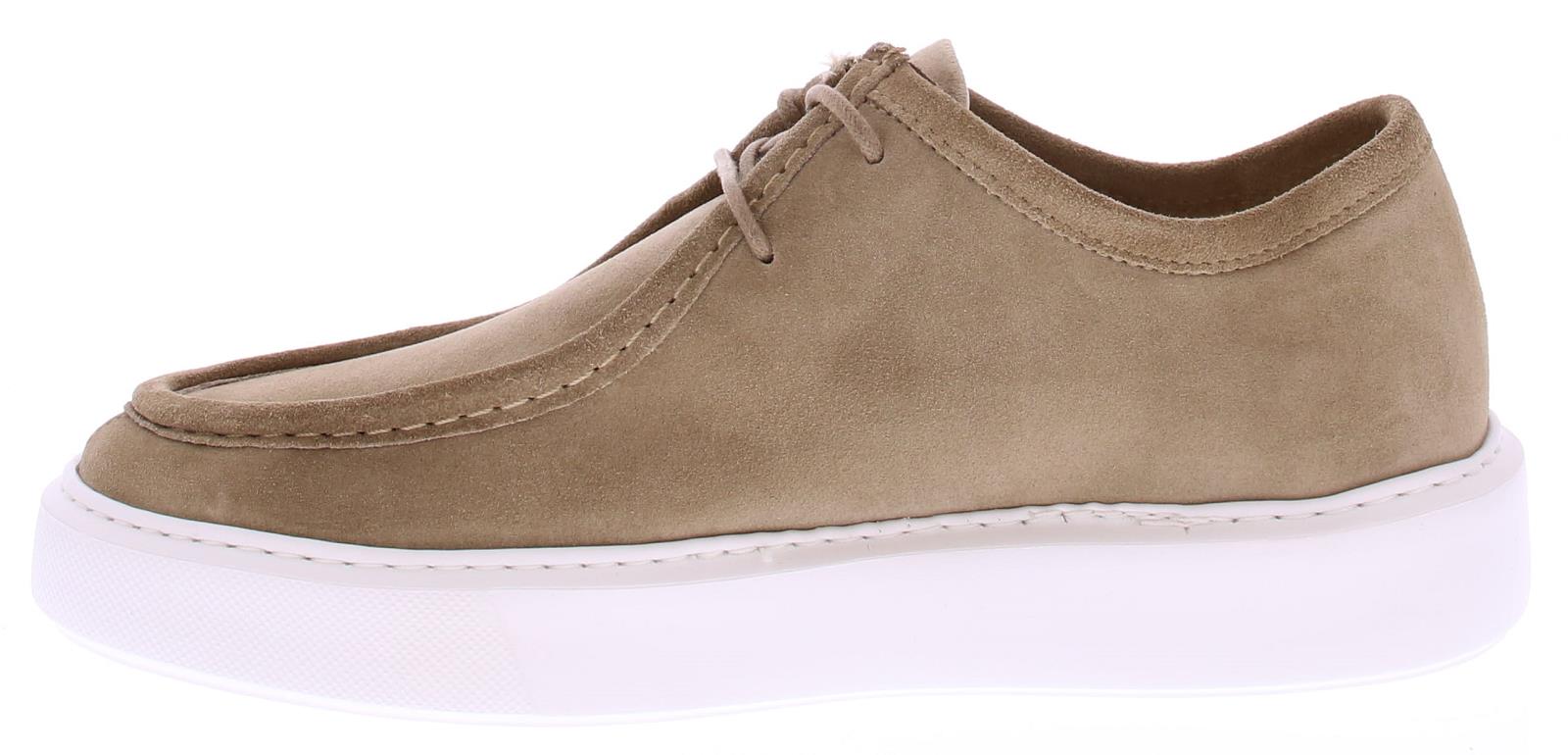 Heren nubikk veterschoen met spiegelnaad op sneaker zool. De schoen is uitgevoerd in taupe suéde en heeft een leren voering.