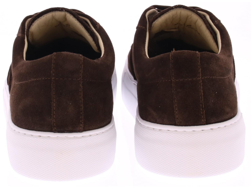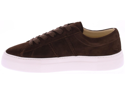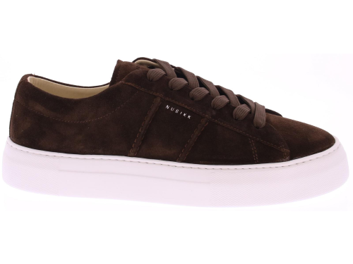 Heren sneaker van het Nederlandse merk Nubikk artikel Jagger Morris 21089200. De schoen is uitgevoerd in donker bruin suede met een bruine veter. De zool is van wit rubber en de voering van creme kleurig leer. Het voetbed is uitneembaar.