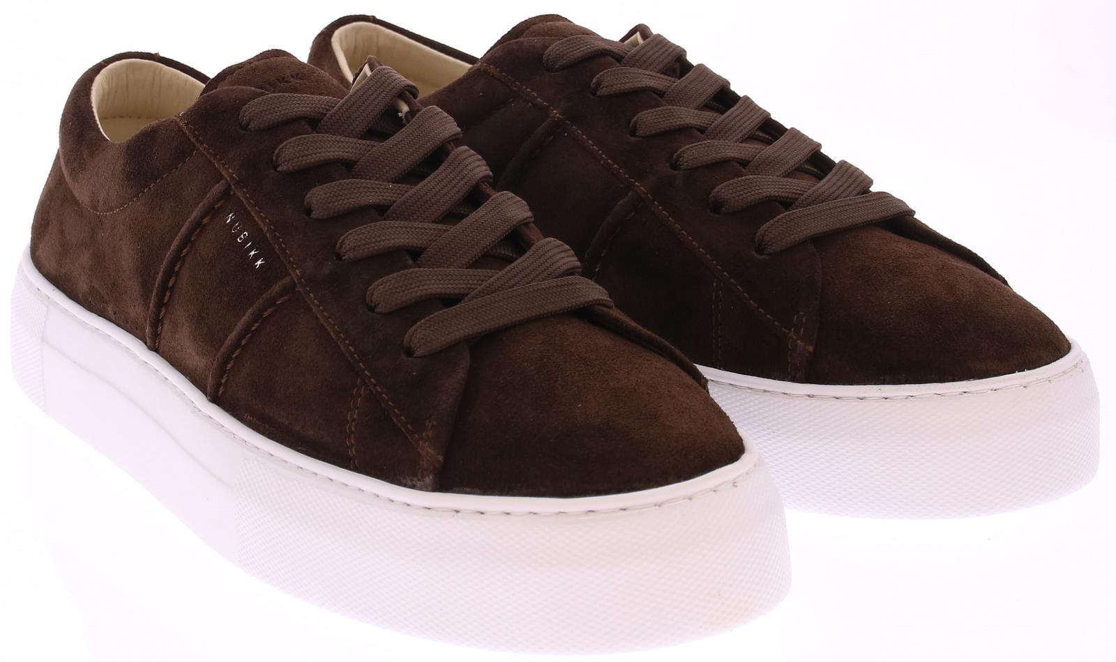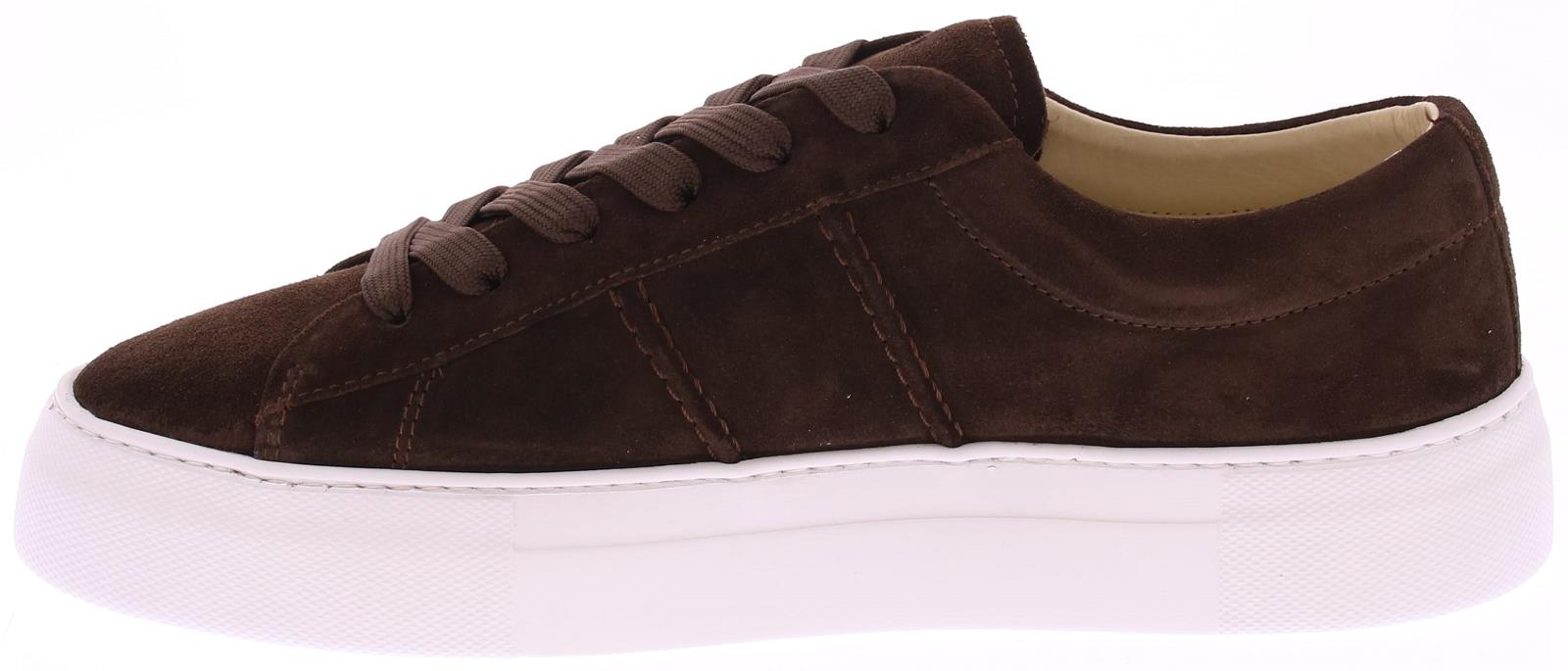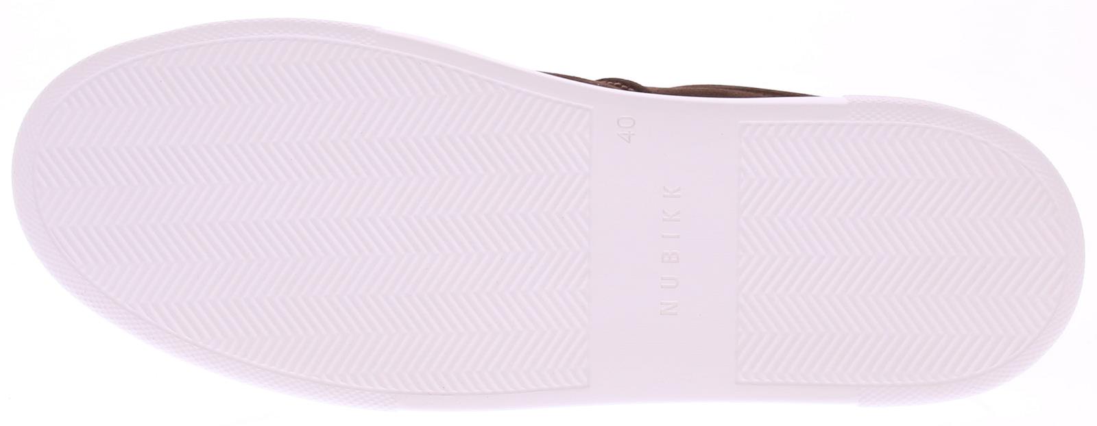 Heren sneaker van het Nederlandse merk Nubikk artikel Jagger Morris 21089200. De schoen is uitgevoerd in donker bruin suede met een bruine veter. De zool is van wit rubber en de voering van creme kleurig leer. Het voetbed is uitneembaar.
