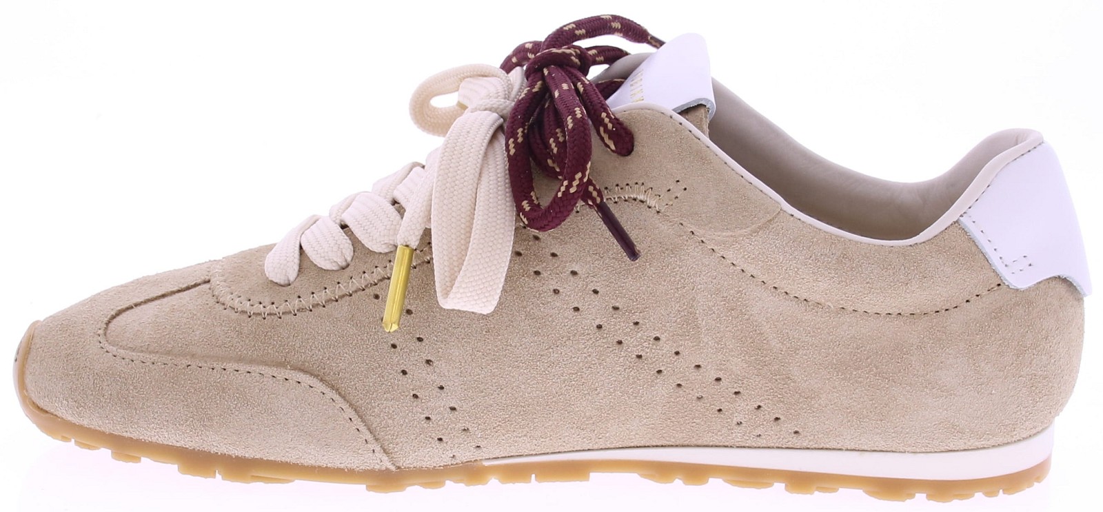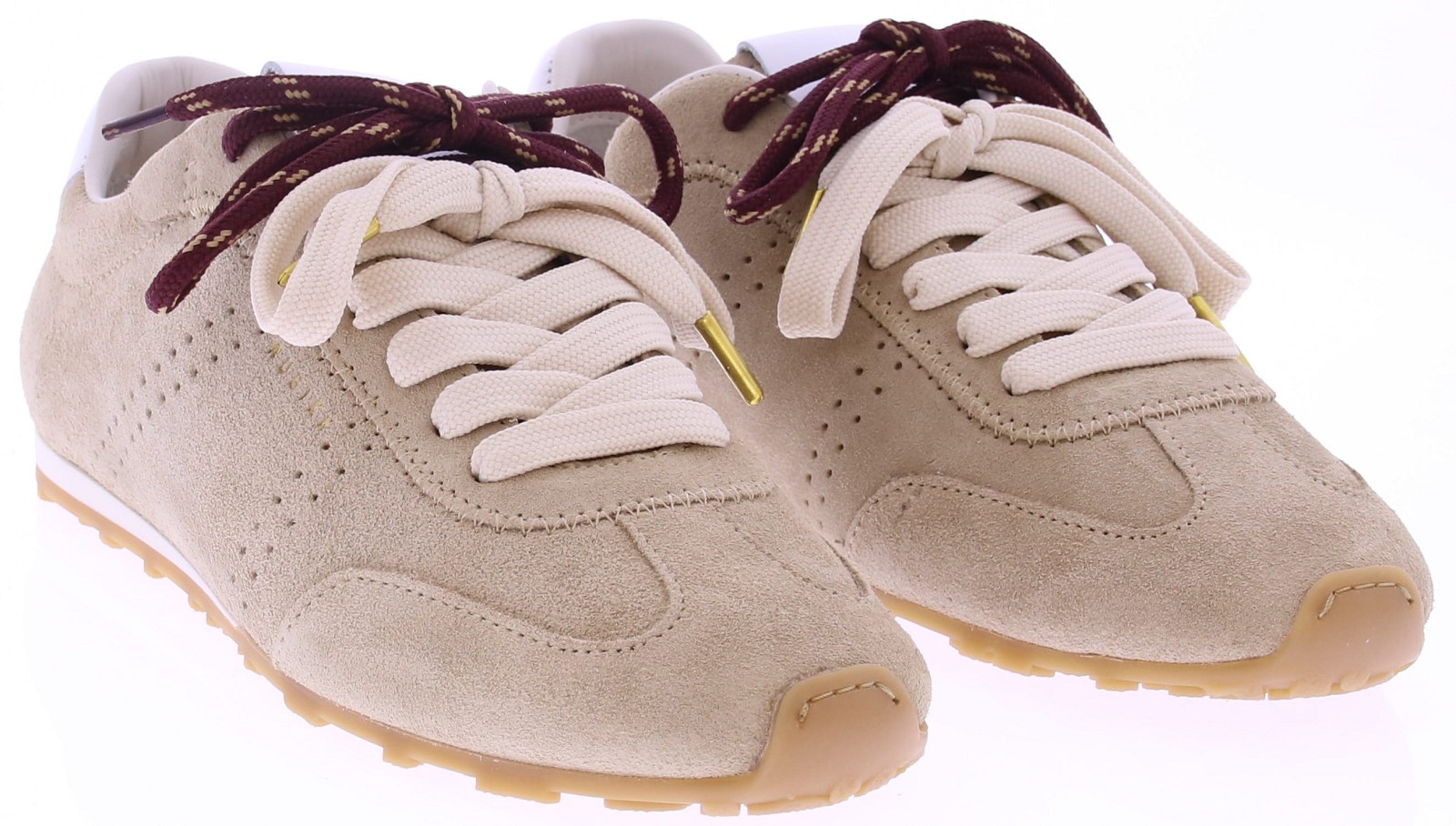 Beige suede dames sneaker van Nubikk. Deze Billy Lou is voorzien van 2 kleuren veters en uitgevoerd in zacht suede met uitneembaar voetbed. Dit fijnere model sneakers is de trend van nu en maakt van iedere outfit een charmante sportieve look.