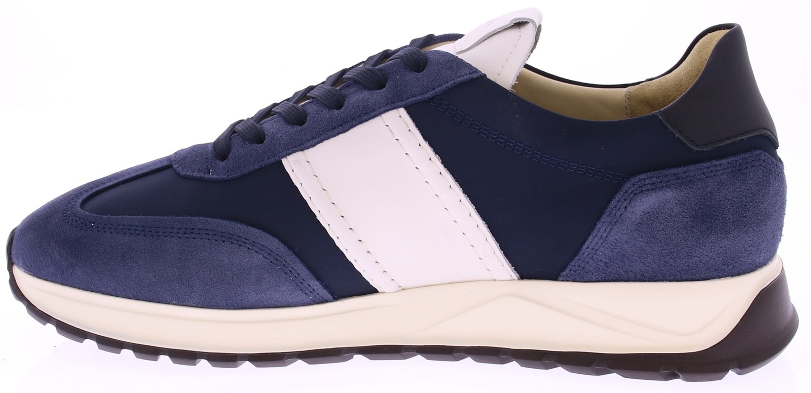 De Nubikk Glen Hendrickx in marineblauw is een eigentijdse sneaker met een sportieve uitstraling en luxe afwerking. De combinatie van diepblauw suède, technische stoffen en een witte leren zijstreep maakt dit model een opvallende en stijlvolle keuze voor elke dag. Stijltip: Deze navy uitvoering van de Glen Hendrickx combineert perfect met jeans, kaki of grijze chino’s. De sportieve look met luxe touch maakt de sneaker geschikt voor zowel casual als smart-casual gelegenheden.