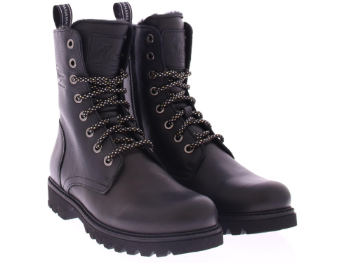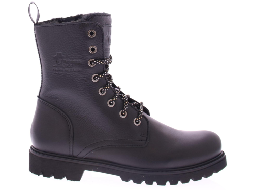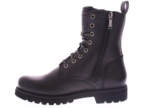 Zwart leren dames veterschoen van Panama Jack. Deze zwarte leren boots hebben een stoere uitstraling en zijn afgewerkt met met een merkreliëf op de schacht, tong en hiel. De laars heeft een gemakkelijk rits met vetersluiting. De veter heeft een leuk zwart zilver patroontje en een bijpassende aantreklus met logo. Deze hippe stijlvolle boots hebben een faux fur voering, waardoor je voeten heerlijk warm aanvoelen! Door zijn zachte uitneembare voetbed en zijn gripvast zool, loop jij moeiteloos door de stad of een gezellige wandeling in het bos.