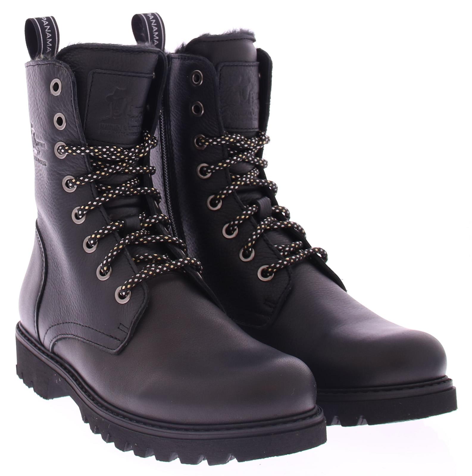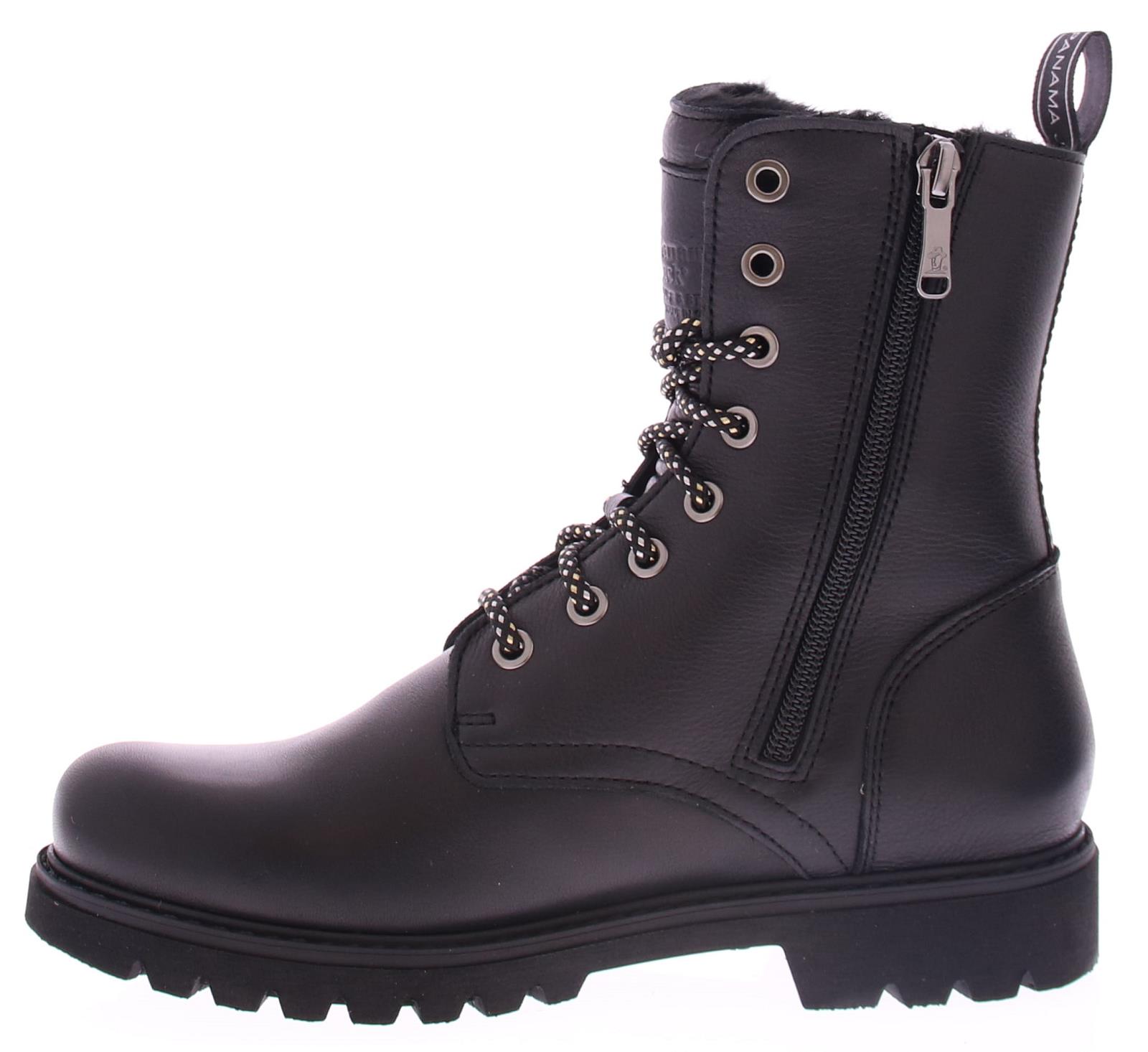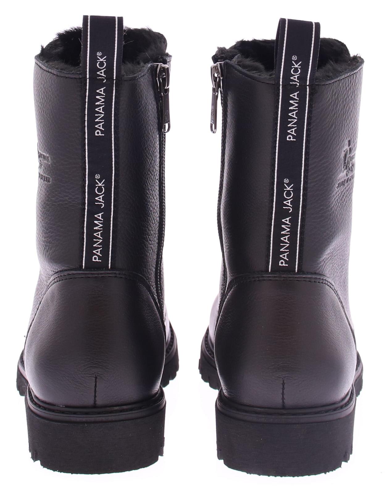 Zwart leren dames veterschoen van Panama Jack. Deze zwarte leren boots hebben een stoere uitstraling en zijn afgewerkt met met een merkreliëf op de schacht, tong en hiel. De laars heeft een gemakkelijk rits met vetersluiting. De veter heeft een leuk zwart zilver patroontje en een bijpassende aantreklus met logo. Deze hippe stijlvolle boots hebben een faux fur voering, waardoor je voeten heerlijk warm aanvoelen! Door zijn zachte uitneembare voetbed en zijn gripvast zool, loop jij moeiteloos door de stad of een gezellige wandeling in het bos.