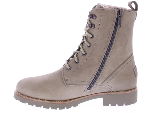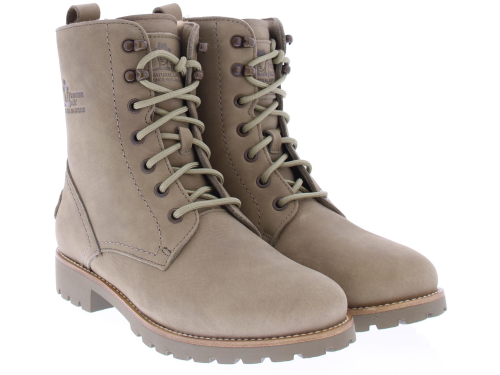 Khaki leren dames veterschoen van Panama Jack. Deze leren boots hebben een stoere uitstraling en zijn afgewerkt met met een merkreliëf op de schacht, tong en hiel. De laars heeft een gemakkelijk vetersluiting en een faux fur voering, waardoor je voeten heerlijk warm aanvoelen! Door zijn zachte uitneembare voetbed en zijn gripvast zool, loop jij moeiteloos door de stad of een gezellige wandeling in het bos.