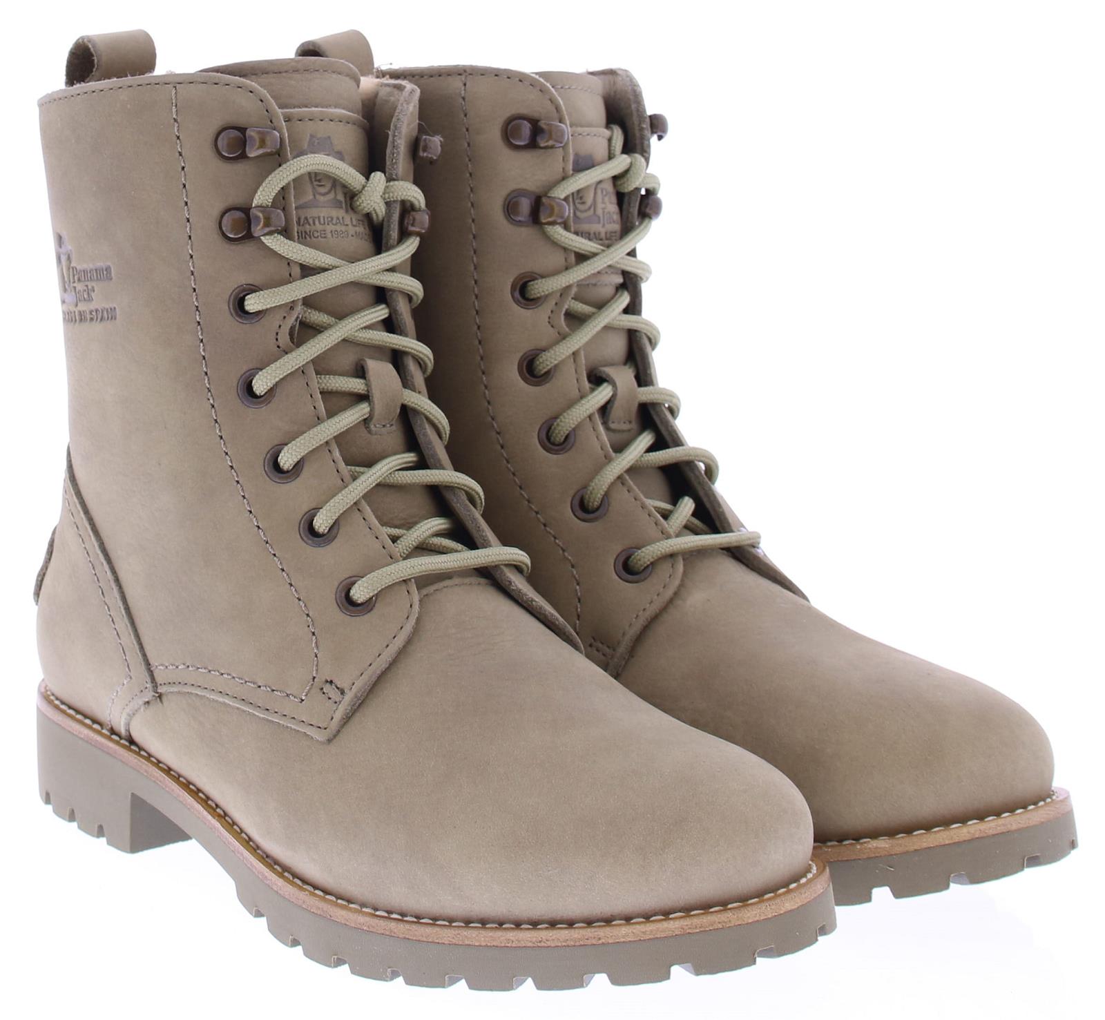 Khaki leren dames veterschoen van Panama Jack. Deze leren boots hebben een stoere uitstraling en zijn afgewerkt met met een merkreliëf op de schacht, tong en hiel. De laars heeft een gemakkelijk vetersluiting en een faux fur voering, waardoor je voeten heerlijk warm aanvoelen! Door zijn zachte uitneembare voetbed en zijn gripvast zool, loop jij moeiteloos door de stad of een gezellige wandeling in het bos.