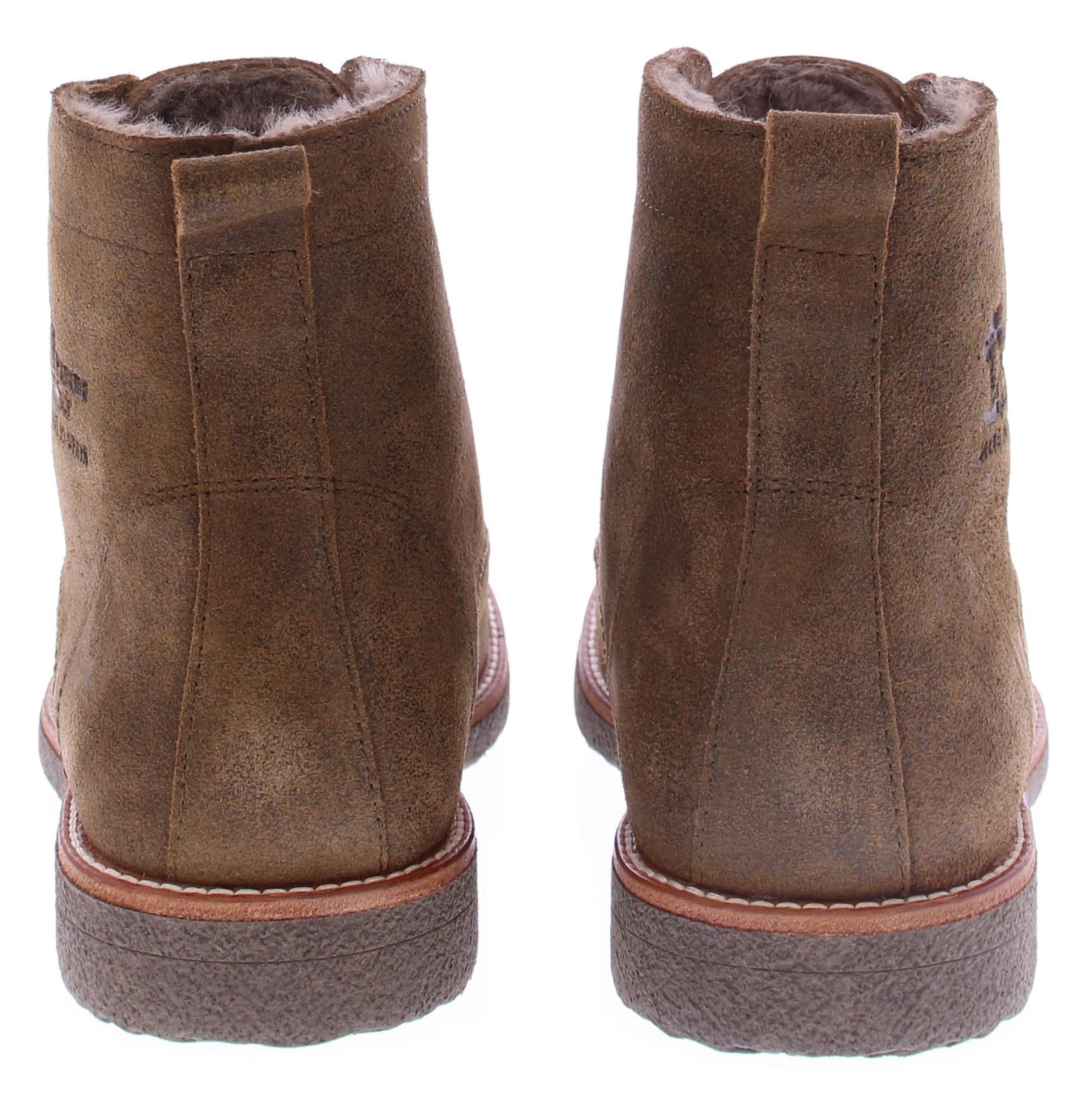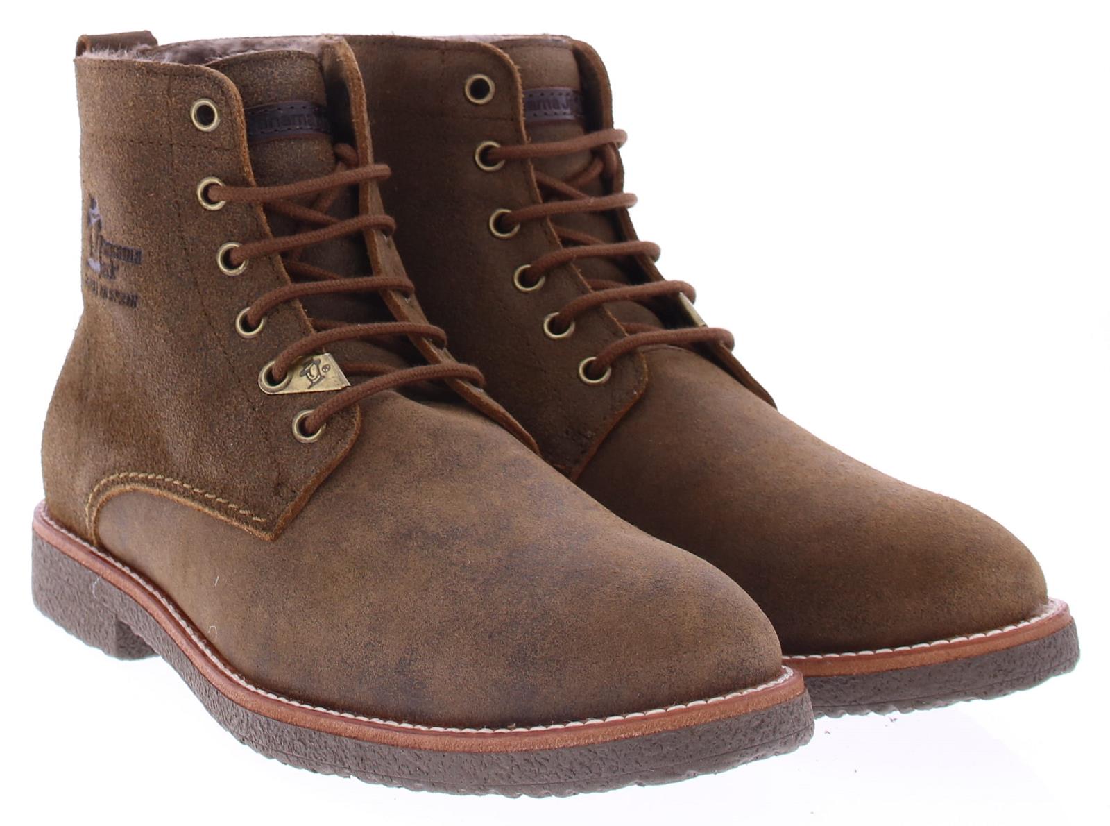 Heren enkelboot van Panama Jack artikel glascow igloo c27 in licht gevet middenbruin suede op een rubber zool. de schoen is geheel met ehte schapenvacht gevoerd.