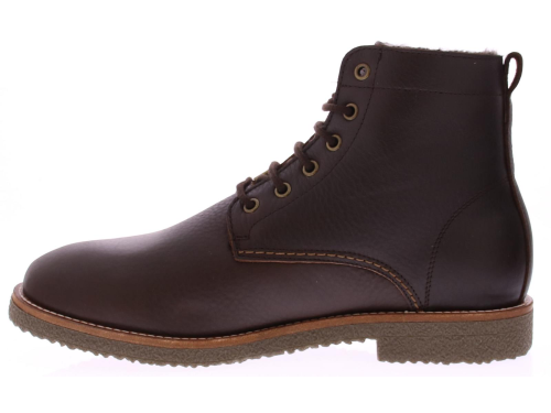 Panama Jack GLASGOW Igloo C1 – Donkerbruine Gevoerde Veterboot Minimalistisch design met maximale winterbescherming De Panama Jack GLASGOW Igloo C1 is een tijdloze veterboot voor heren, uitgevoerd in donkerbruin gevet nappaleer en volledig gevoerd met 100% natuurlijk schapenvacht. Deze laars combineert een strak en ingetogen ontwerp met het vertrouwde comfort en de functionaliteit die je van Panama Jack mag verwachten. Productkenmerken: ? Kleur: Donkerbruin (C1) ? Bovenmateriaal: Waterafstotend gevet nappaleer ? Voering: Volledig gevoerd met echt schapenvacht – warm, ademend en comfortabel ? Binnenzool: Uitneembaar en warm voetbed ? Zool: Rubberen zool met fijne grip en demping ? Sluiting: Veter met metalen oogjes voor een stevige pasvorm ? Productie: Gemaakt in Spanje – handgemaakt vakmanschap Waarom kiezen voor de GLASGOW Igloo? De GLASGOW is ontworpen voor mannen die houden van comfort en eenvoud, zonder in te leveren op kwaliteit. Het cleane silhouet maakt deze laars geschikt voor zowel casual als meer geklede outfits. Dankzij de warme voering is dit model ideaal voor koude herfst- en winterdagen. Perfect voor: Alledaags gebruik in herfst en winter Casual én nette outfits Heren die stijl en functionaliteit willen combineren Warme voeten zonder overdaad