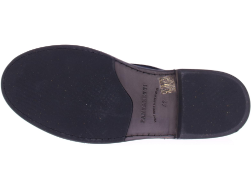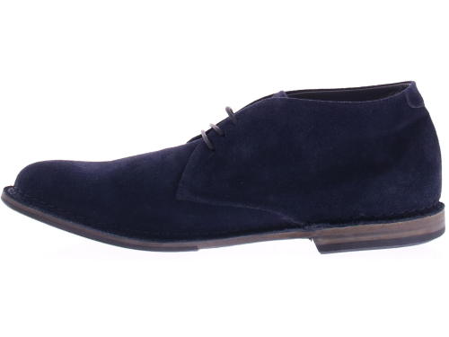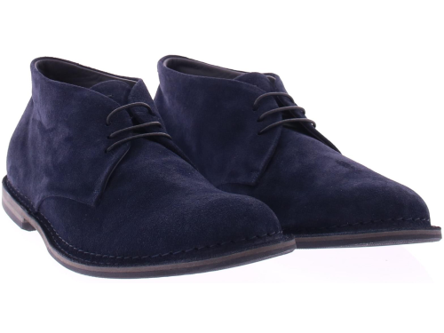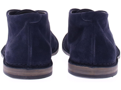 Heren enkelboot van Pantanetti in donkerblauw suede met saint crispin maakwijze. Hierbij is het bovenwerk horizontaal rondom doorgenaaid op de binnenzool. Deze maakwijze geeft een heel soepele schoen als resultaat en dit in combinatie met het gebruik van de mooiste materialen en pasvorm maakt deze schoen uniek.