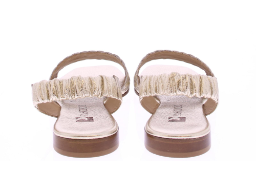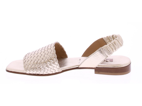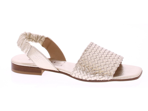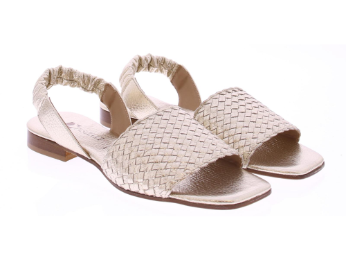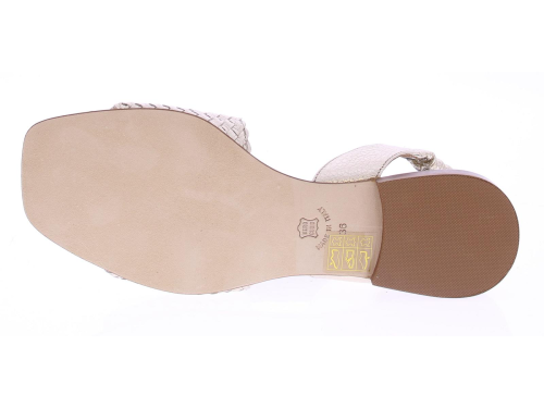 Platina kleurige leren dames sandaal van Pascucci. Deze sandaal heeft een band over de voet van lichtgevlochten leer. De hielband is bekleed met een zacht en soepel elastiek zodat deze goed aansluit. Het comfortabele voetbed is van leer en de hak heeft een hoogte van 2 cm.